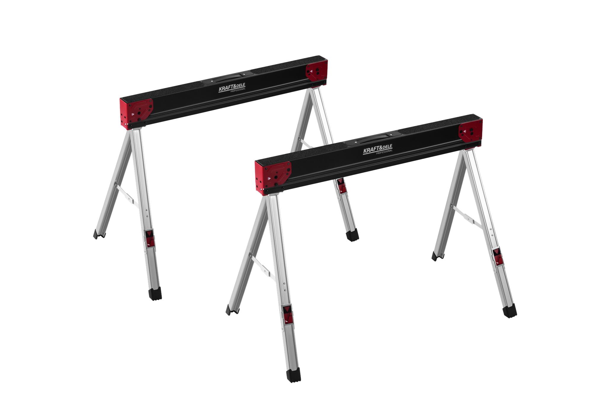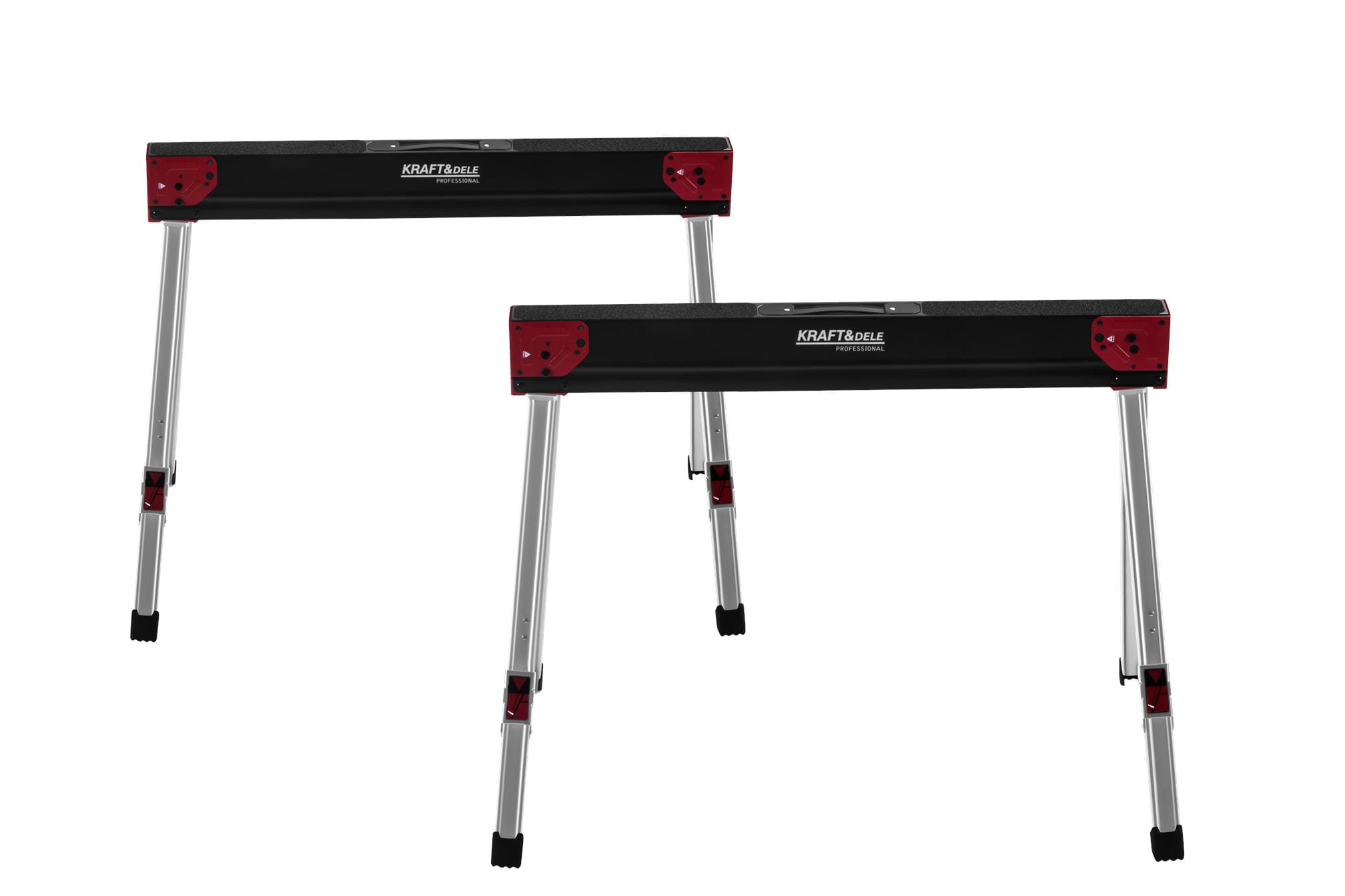 Metalowe stojaki warsztatowe w zestawie dwóch sztuk, przeznaczone do podparcia materiałów podczas obróbki drewna, cięcia oraz innych prac stolarskich i budowlanych. Składana konstrukcja umożliwia kompaktowe przechowywanie i szybkie rozstawienie bez narzędzi.