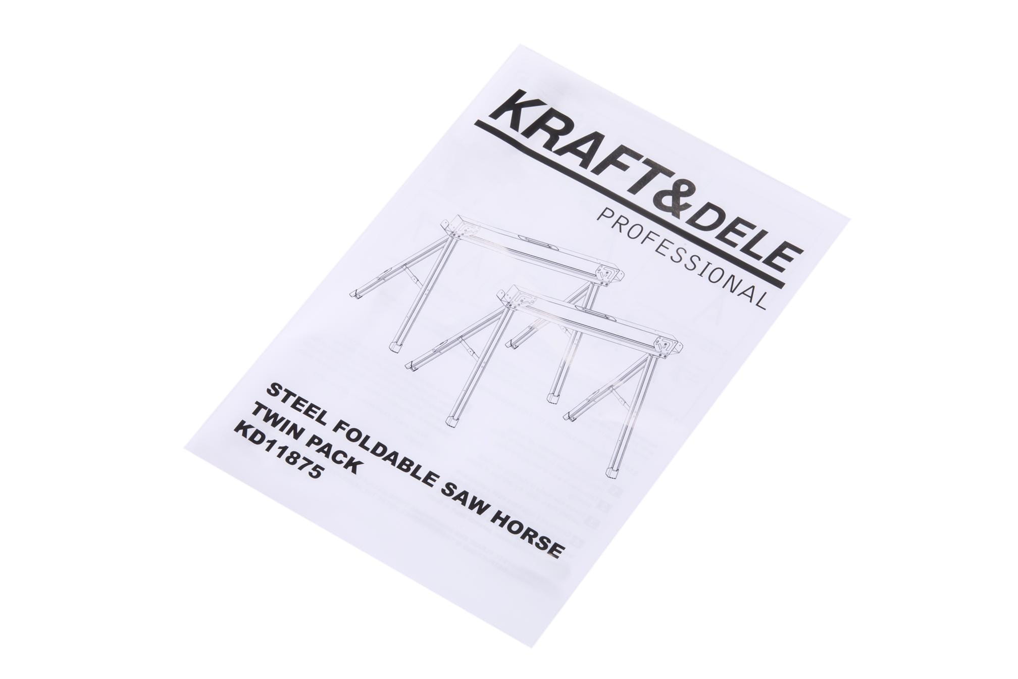 Przed pierwszym użyciem należy upewnić się, że nogi są w pełni rozłożone i zablokowane przyciskiem. Koziołki przeznaczone są do użytku na stabilnym, stosunkowo płaskim podłożu — składane podpórki nóżek kompensują niewielkie nierówności. Metalową konstrukcję należy chronić przed długotrwałą ekspozycją na wilgoć, która może prowadzić do korozji. Po zakończeniu pracy zaleca się oczyszczenie powierzchni z wiórów, trocin i zanieczyszczeń oraz złożenie koziołków przed przechowywaniem w celu ochrony mechanizmu składania.