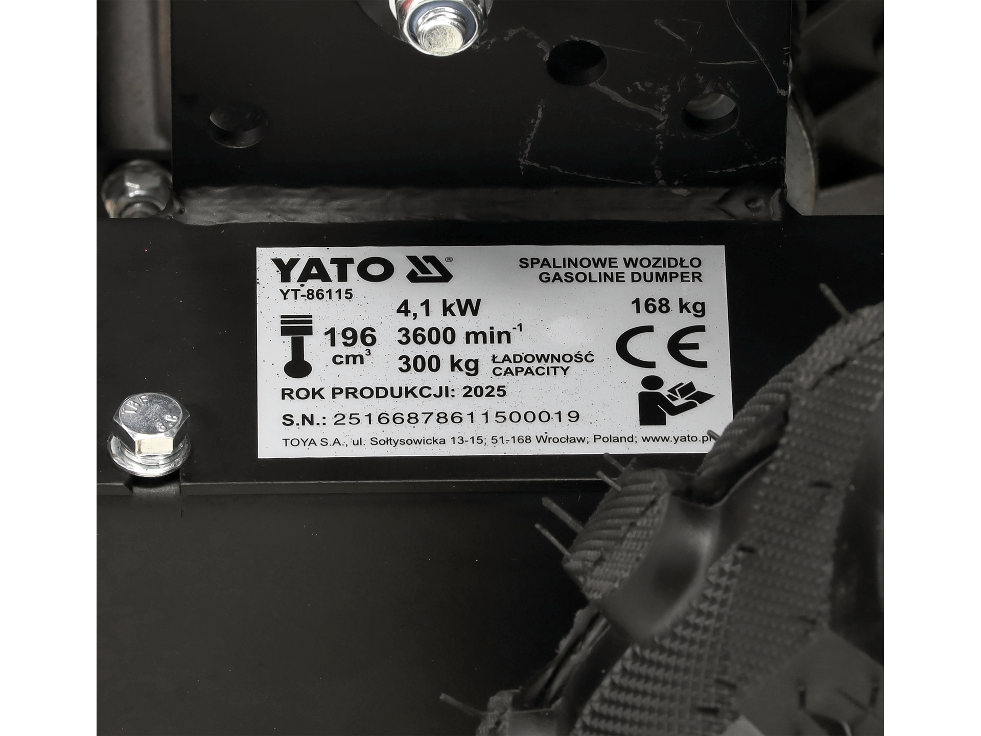 Maksymalna ładowność 300 kg przy stosunkowo niskiej masie własnej 168 kg przekłada się na efektywność transportu. Konstrukcja pozwala przewozić materiały budowlane, nawóz, drewno czy ziemię. Stosunek ładowności do masy własnej (1,78:1) zapewnia stabilność podczas jazdy.