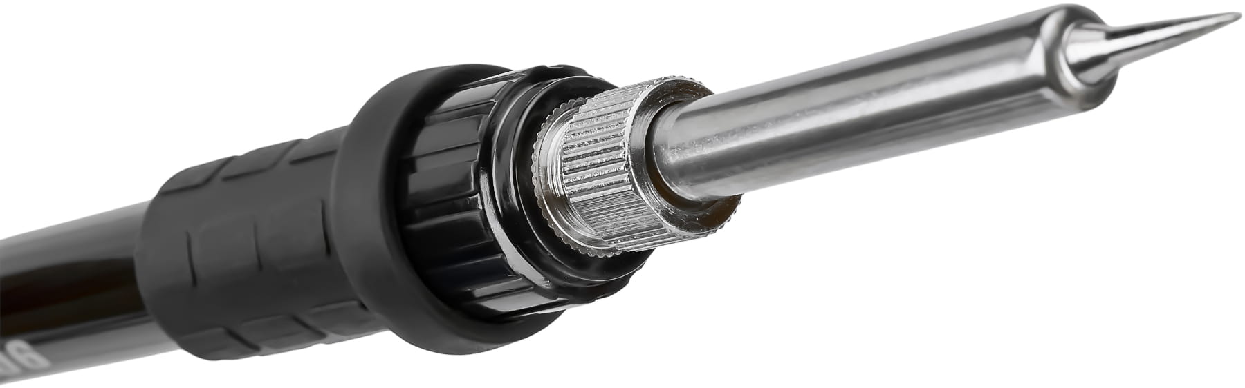 Element grzejny zbudowany w technologii drutu nawiniętego na ceramicznym rdzeniu charakteryzuje się odpornością na drgania mechaniczne i szybkim nagrzewaniem. Ceramika pełni funkcję izolatora termicznego, ograniczając straty ciepła i stabilizując temperaturę pracy. Kolba lutownicy ma standardowe wymiary, co umożliwia stosowanie powszechnie dostępnych grotów i dysz zamiennych.