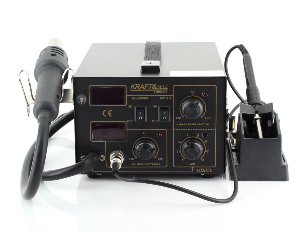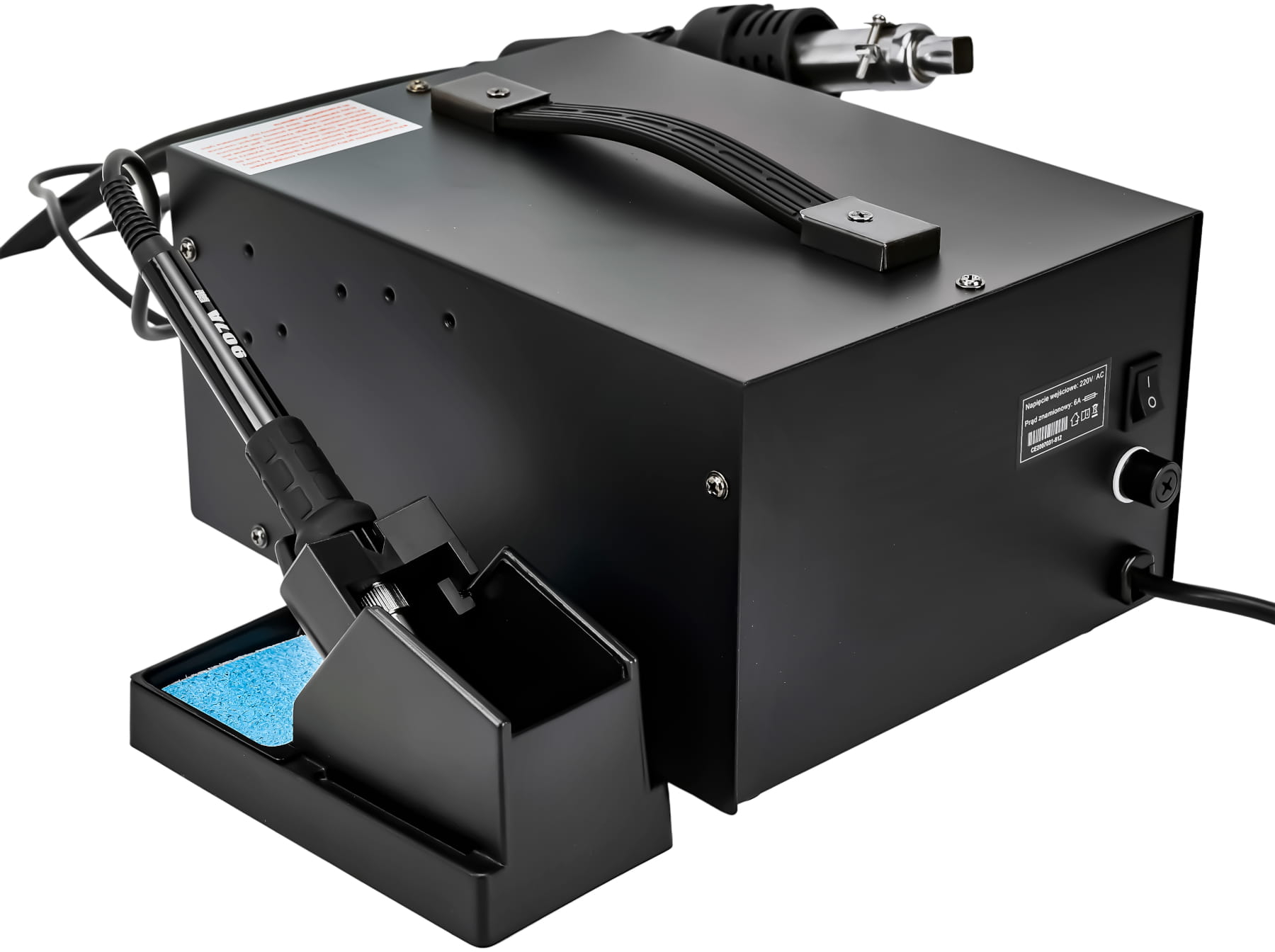 Stacja łącząca funkcję spawarki gorącym powietrzem z wbudowaną lutownicą kolbową grotową. Urządzenie przeznaczone do łączenia i naprawy elementów z tworzyw sztucznych oraz do prac lutowniczych — zarówno w warsztacie samochodowym, jak i w serwisie elektronicznym.