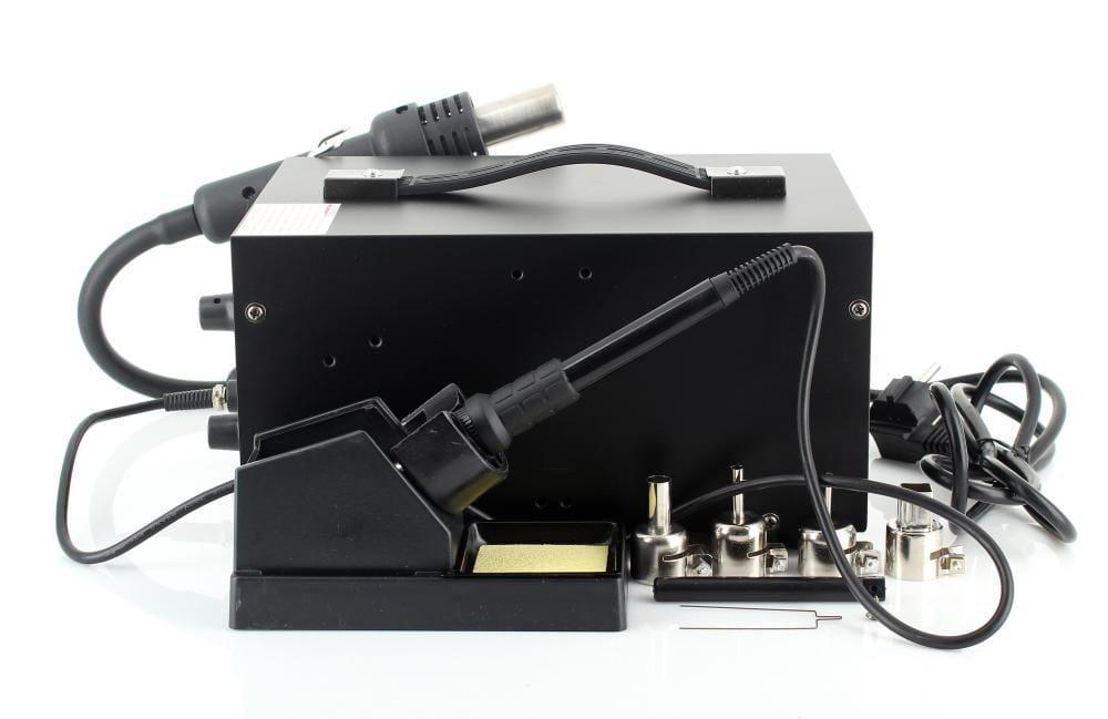 Stacja wyposażona jest w oddzielny wzmacniacz operacyjny dla toru gorącego powietrza i dla lutownicy kolbowej. Dzięki temu każda z funkcji pracuje niezależnie, a parametry jednej nie wpływają na drugą — co ma znaczenie przy precyzyjnej pracy lutowniczej prowadzonej równolegle z nagrzewaniem plastiku.