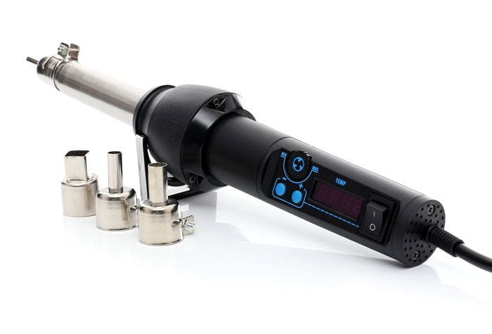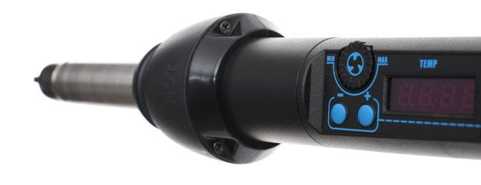 Urządzenie pozwala niezależnie regulować temperaturę grota, intensywność przepływu powietrza oraz siłę podmuchu. Taka konfiguracja umożliwia precyzyjne dopasowanie warunków spawania do różnych typów tworzyw — od cienkich folii po grube elementy karoserii.