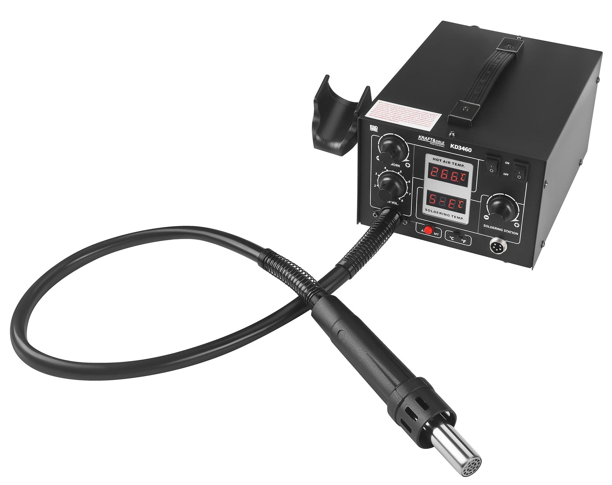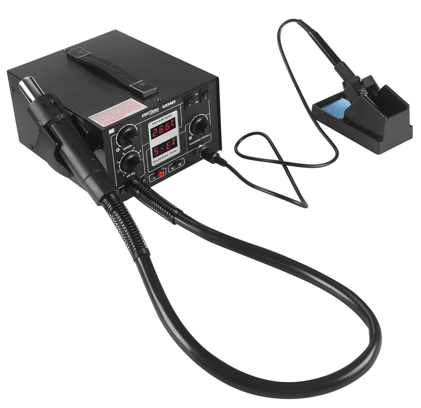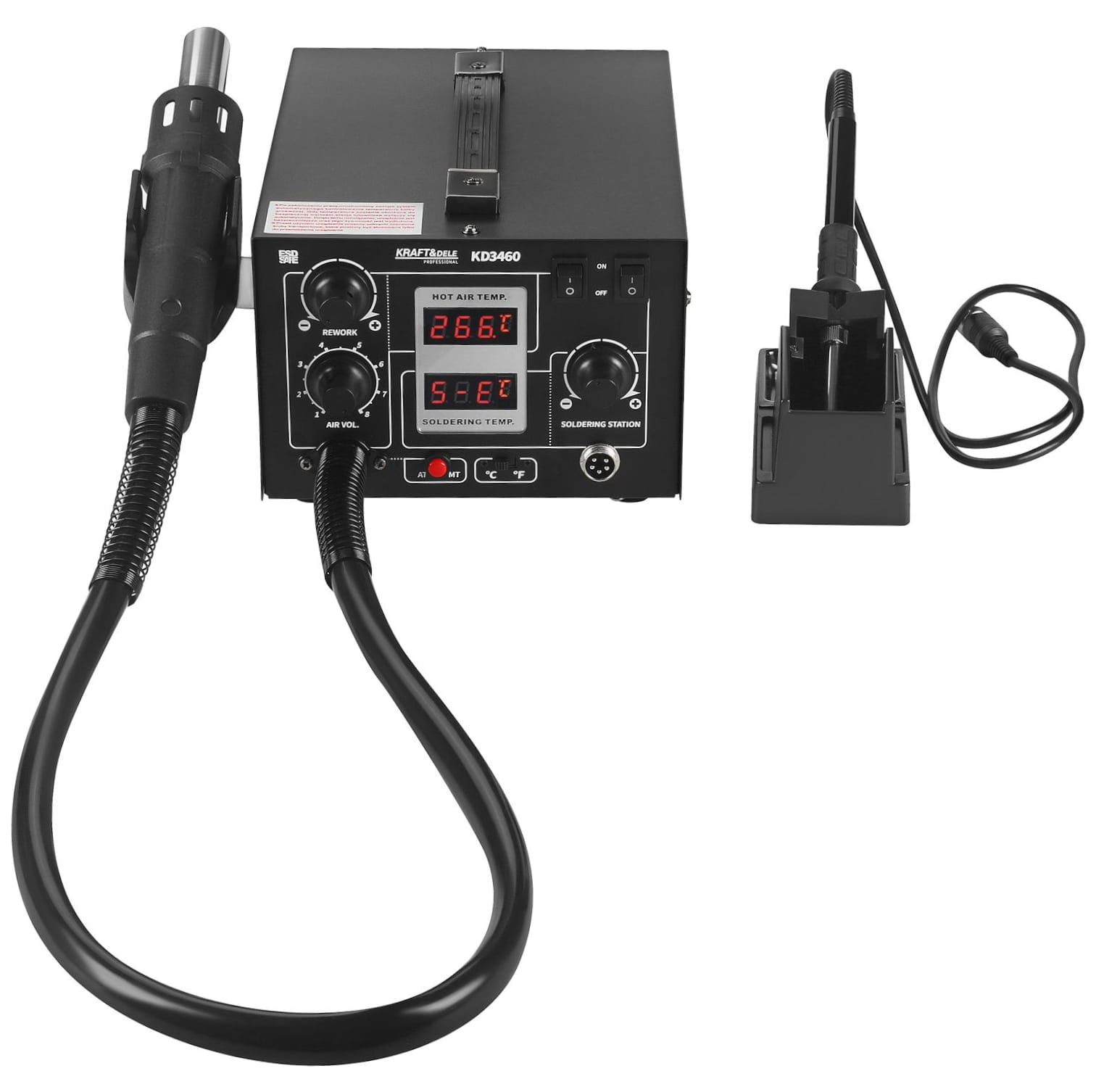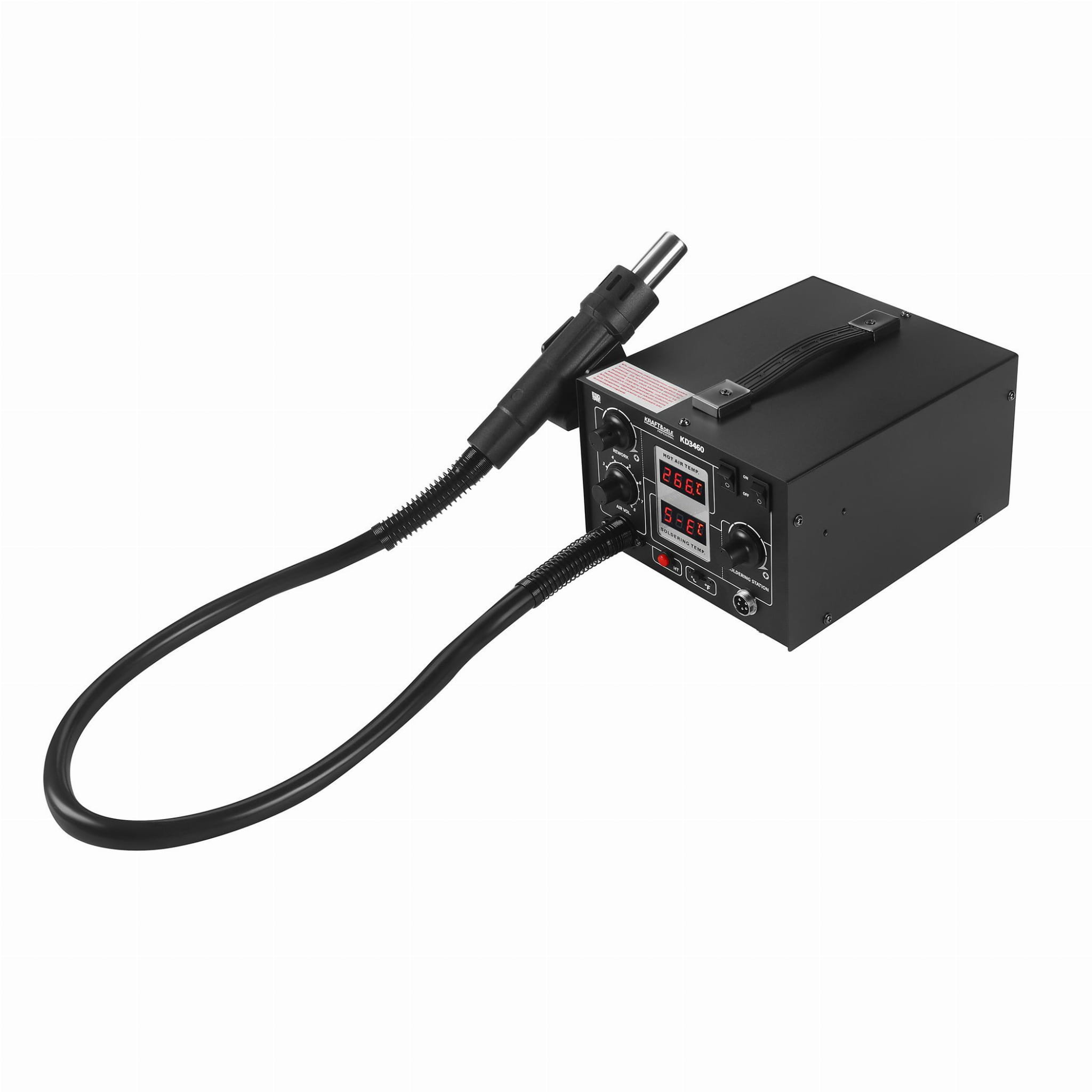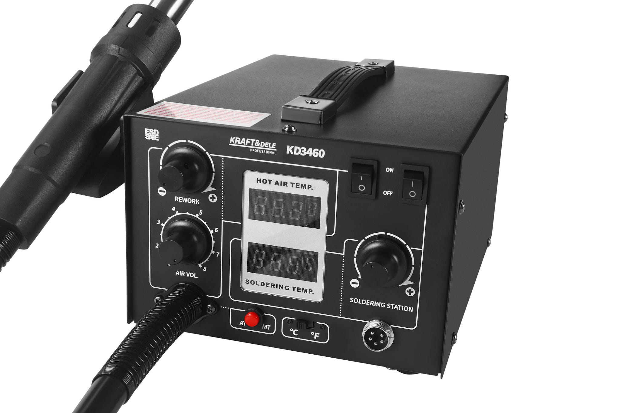 KD3460 to urządzenie łączące funkcję stacji lutowniczej i stacji gorącego powietrza w jednej kompaktowej jednostce. Obsługuje szeroki zakres temperatur i umożliwia pracę zarówno z elementami elektronicznymi (w tym układami SMD, BGA, QFP), jak i z tworzywami sztucznymi. Przeznaczone do zastosowań serwisowych i warsztatowych.