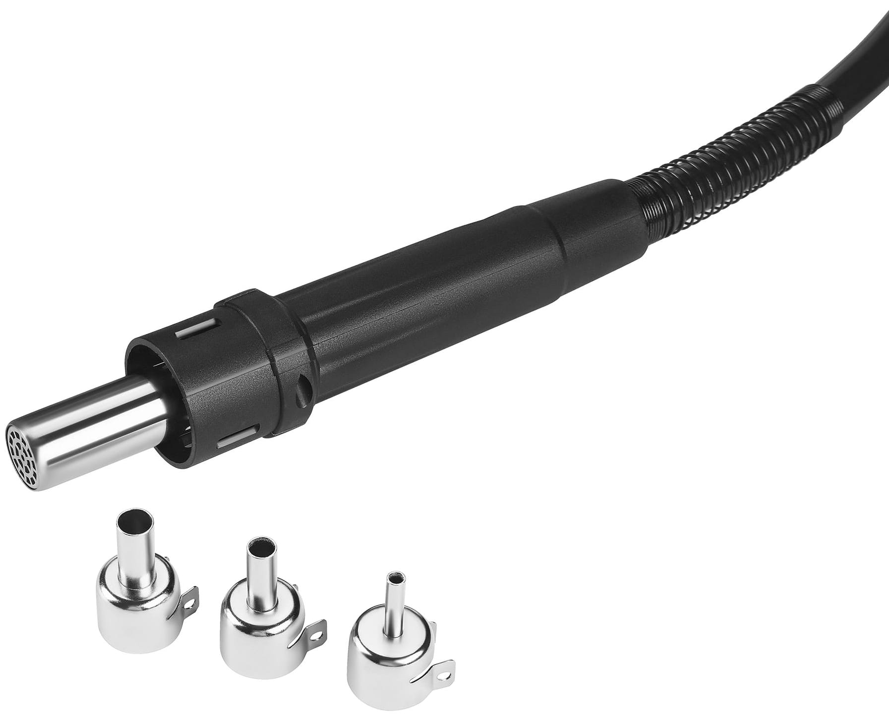 Własny silnik sprężarki zapewnia stały i równomierny przepływ powietrza do 168 L/min. Stabilność przepływu ma bezpośrednie przełożenie na powtarzalność wyników pracy — szczególnie istotną przy wylutowywaniu układów BGA i PLCC, gdzie nierównomierny strumień ciepła może uszkodzić sąsiednie komponenty.