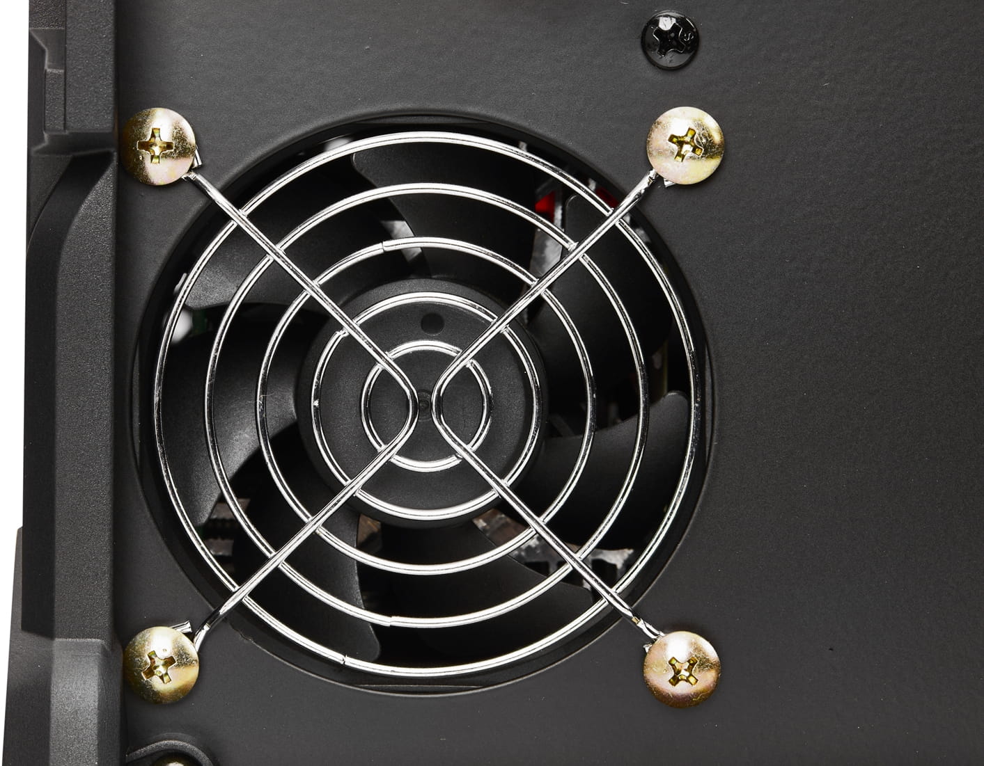 Wyświetlacz LCD umożliwia bieżący odczyt ustawionych parametrów — prądu i napięcia — bez konieczności szacowania wartości. Wentylatorowy system chłodzenia odprowadza ciepło z modułów mocy, wydłużając żywotność elektroniki przy intensywnej eksploatacji.