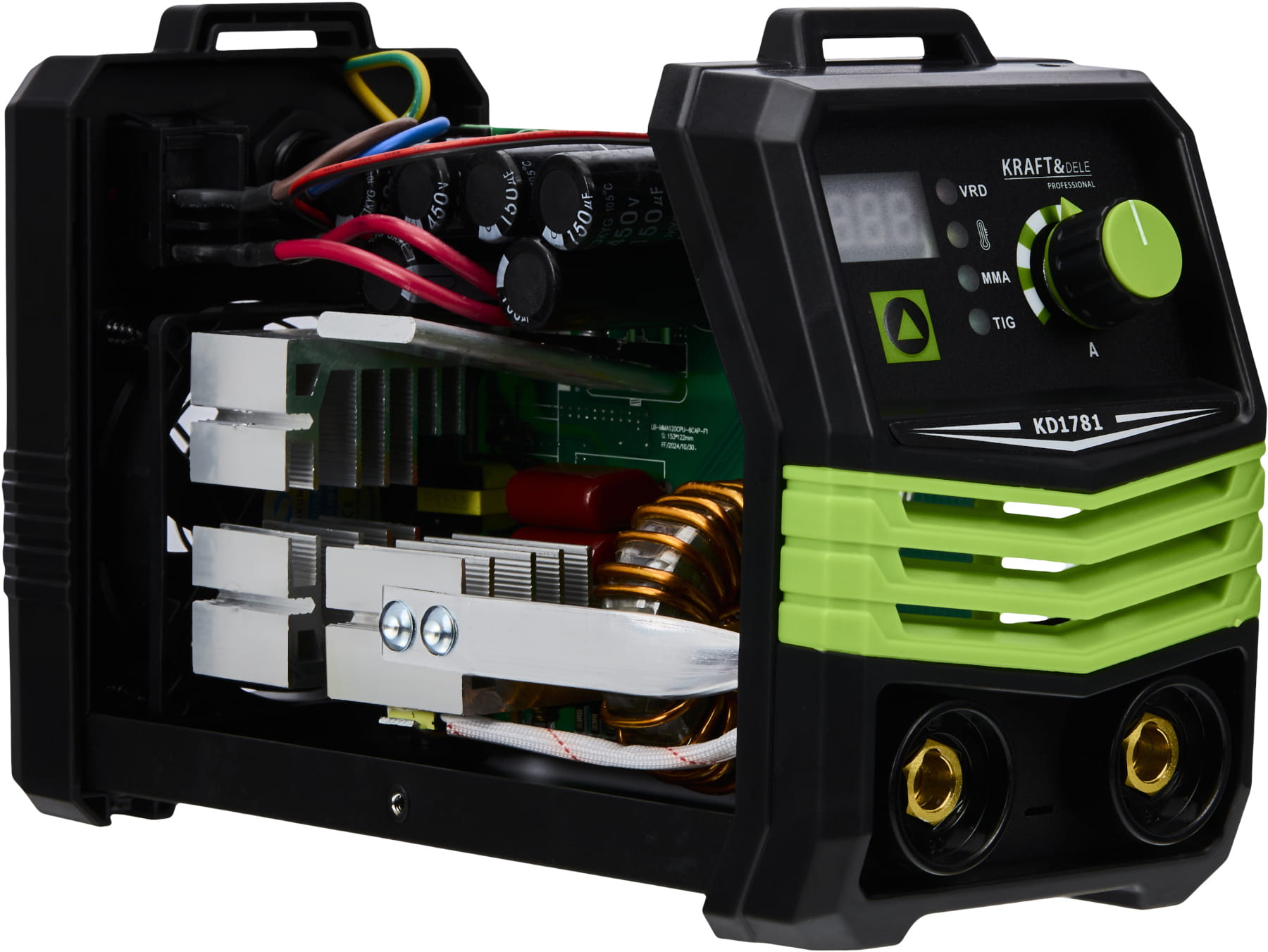 KD1781 to jednofazowa spawarka inwertorowa obsługująca metody MMA (spawanie elektrodą otuloną) oraz TIG LIFT (spawanie wolframem z zajarzeniem kontaktowym). Konstrukcja inwerterowa przekłada się na stabilność łuku i stosunkowo niską wagę urządzenia wynoszącą 3,4 kg. Spawarka pracuje z napięciem sieci 230 V i nie wymaga przyłącza trójfazowego.