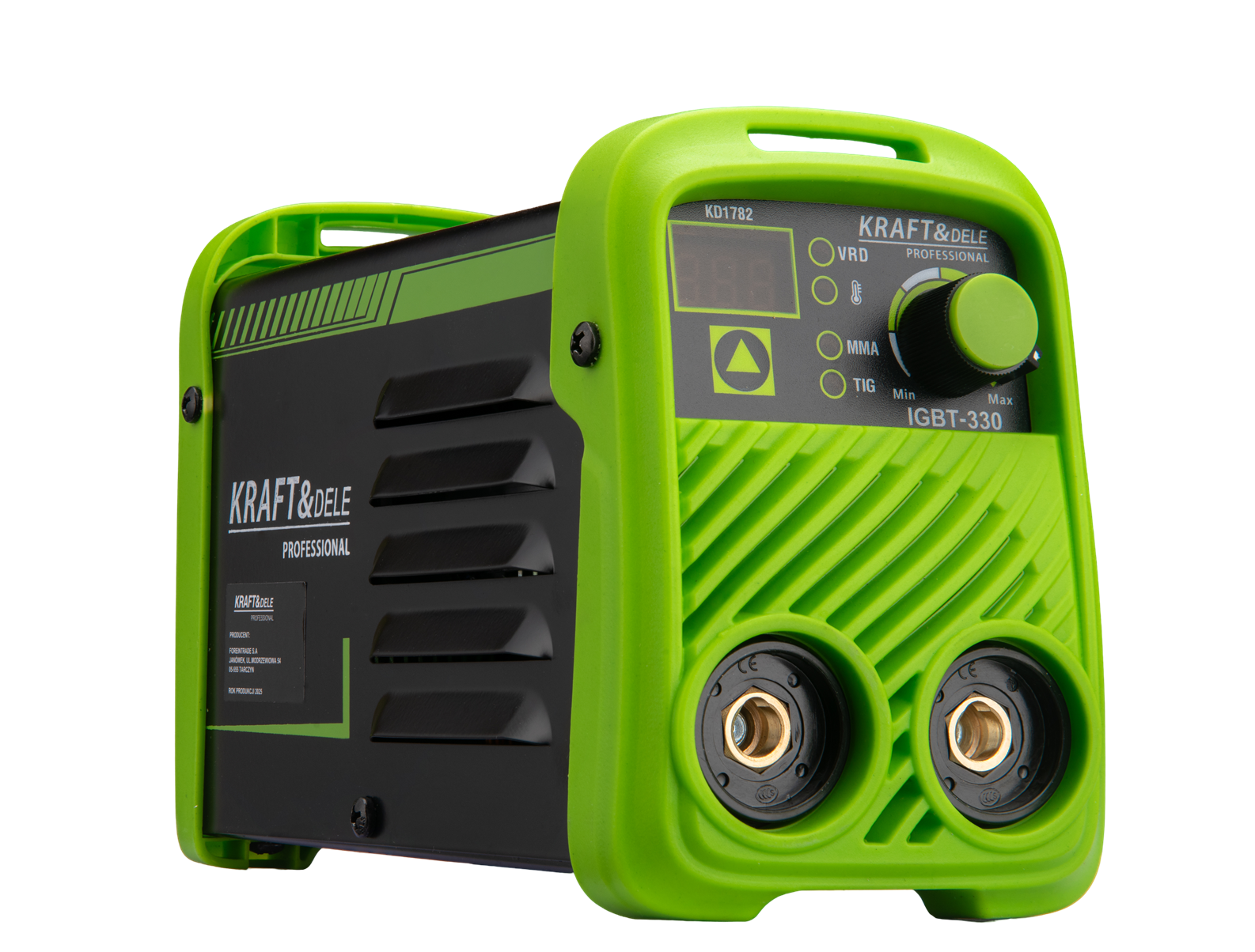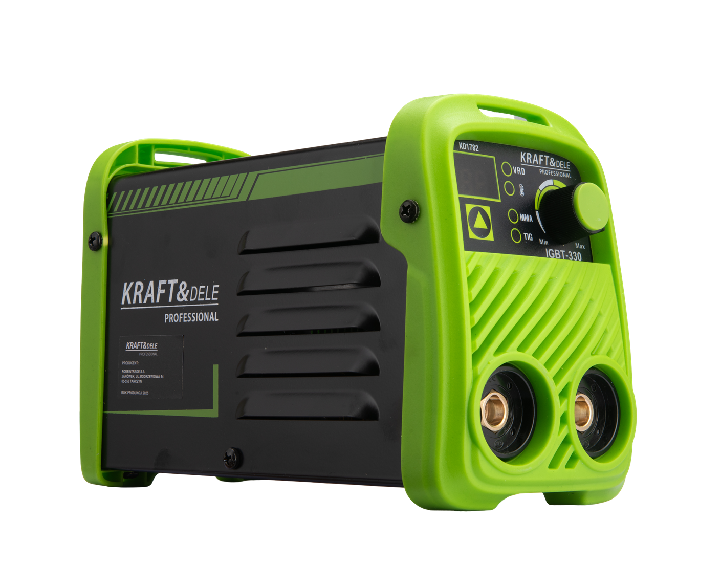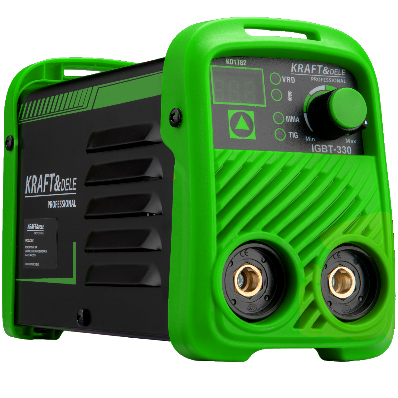 KD1782 to jednofazowa spawarka inwertorowa obsługująca dwie metody spawania: MMA (elektrodą otuloną) oraz TIG LIFT (elektrodą wolframową w osłonie gazu). Urządzenie pracuje na napięciu 230V i oferuje płynną regulację prądu w zakresie 20–330A, co pozwala dopasować parametry zarówno do cienkich blach, jak i grubszych elementów konstrukcyjnych.