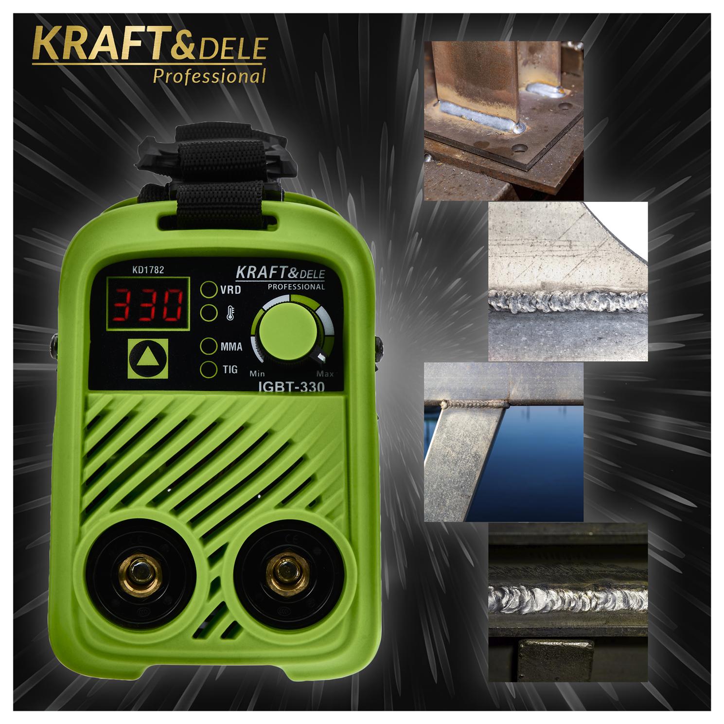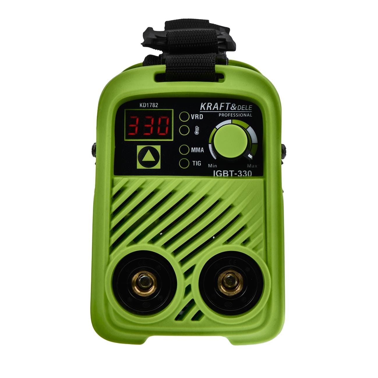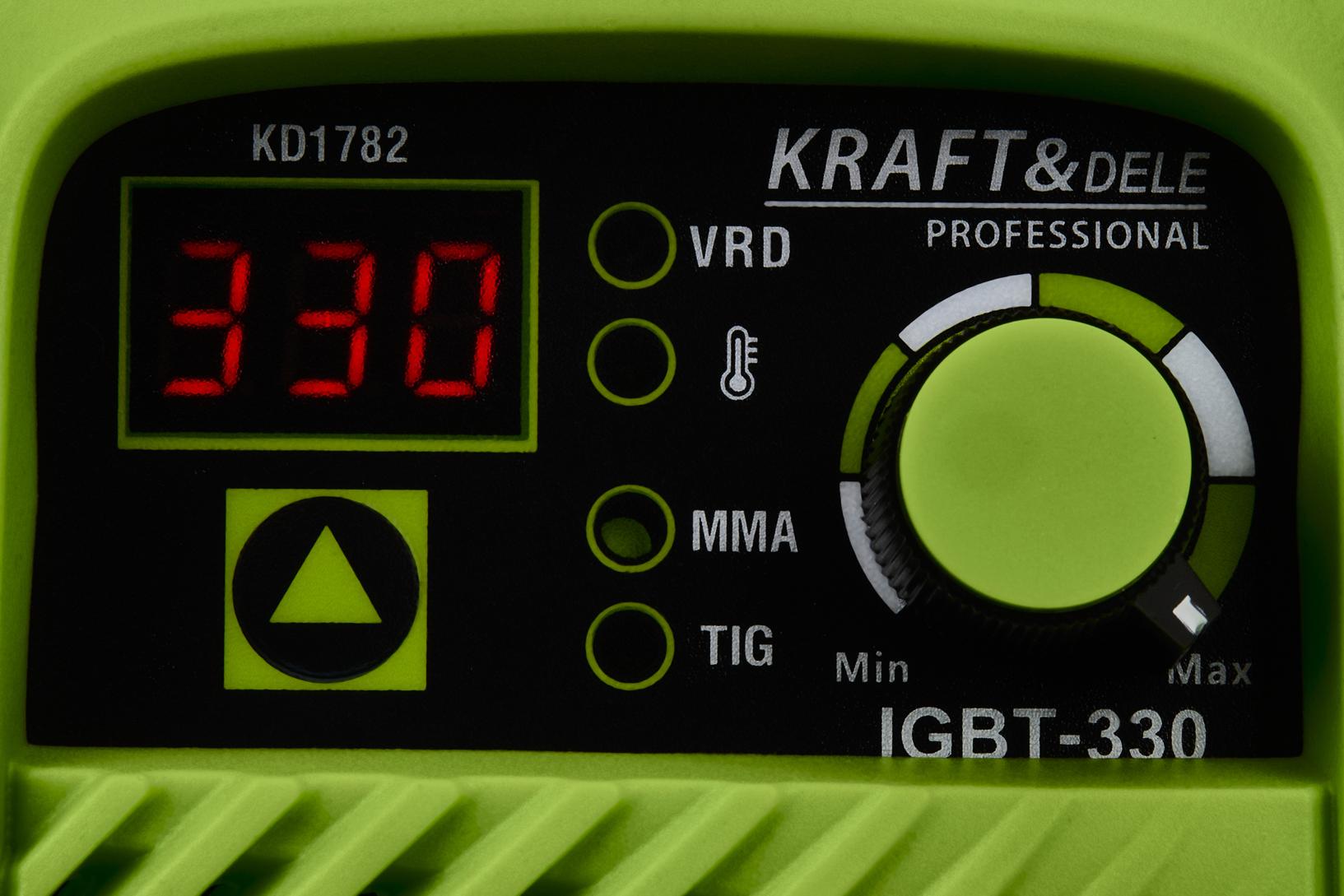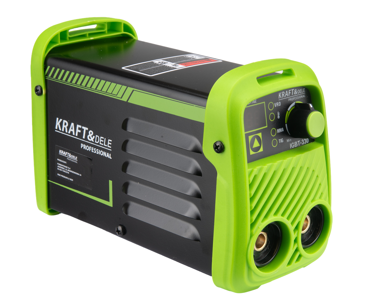 KD1782 to jednofazowa spawarka inwertorowa obsługująca dwie metody spawania: MMA (elektrodą otuloną) oraz TIG LIFT (elektrodą wolframową w osłonie gazu). Urządzenie pracuje na napięciu 230V i oferuje płynną regulację prądu w zakresie 20–330A, co pozwala dopasować parametry zarówno do cienkich blach, jak i grubszych elementów konstrukcyjnych.