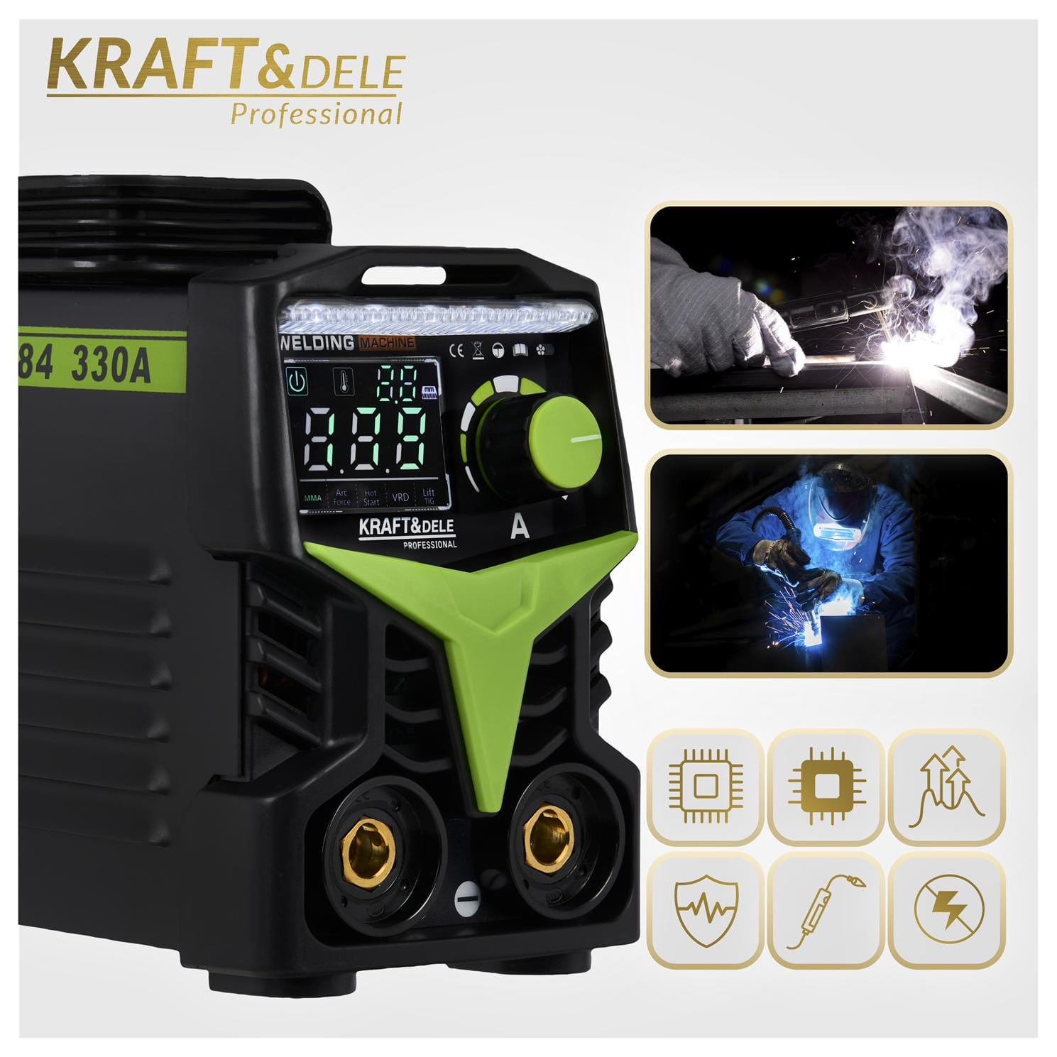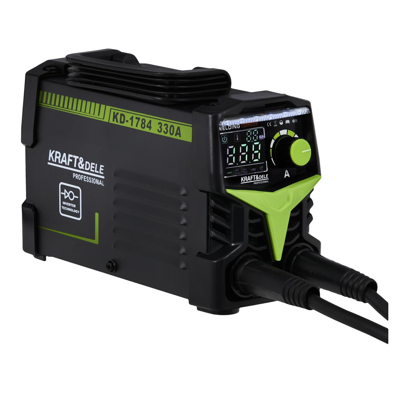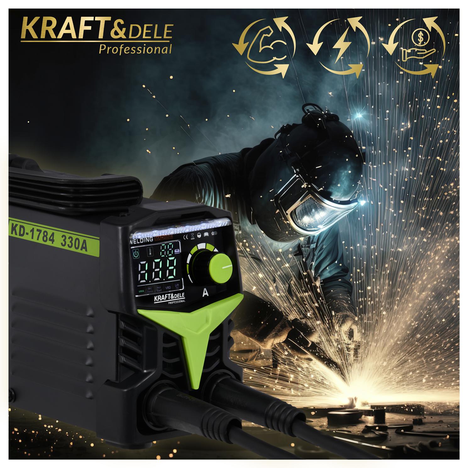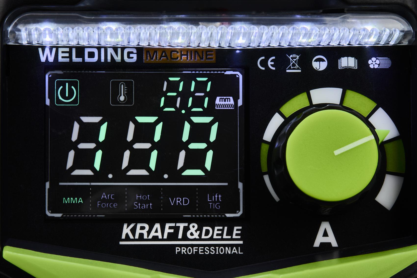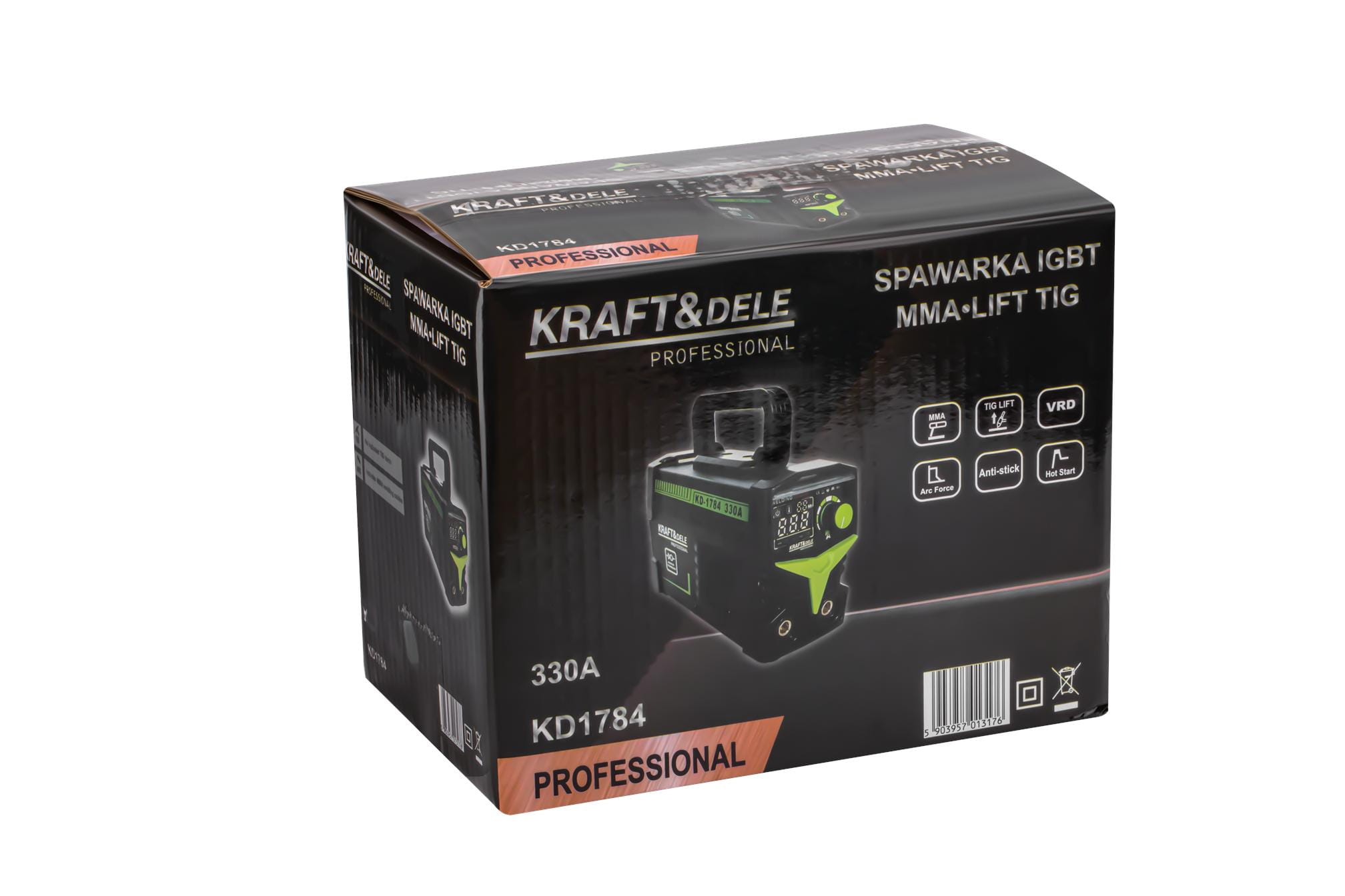 KD1784 to spawarka inwertorowa zasilana z sieci 230V, obsługująca dwie metody spawania: MMA (elektrodą otuloną) oraz TIG LIFT (elektrodą wolframową w osłonie gazu). Urządzenie wyposażono w system VRD obniżający napięcie w stanie bezczynności oraz płynną regulację prądu w zakresie 20–330A. Masa 3,4 kg umożliwia stosowanie spawarki w warunkach terenowych i w trudno dostępnych miejscach.