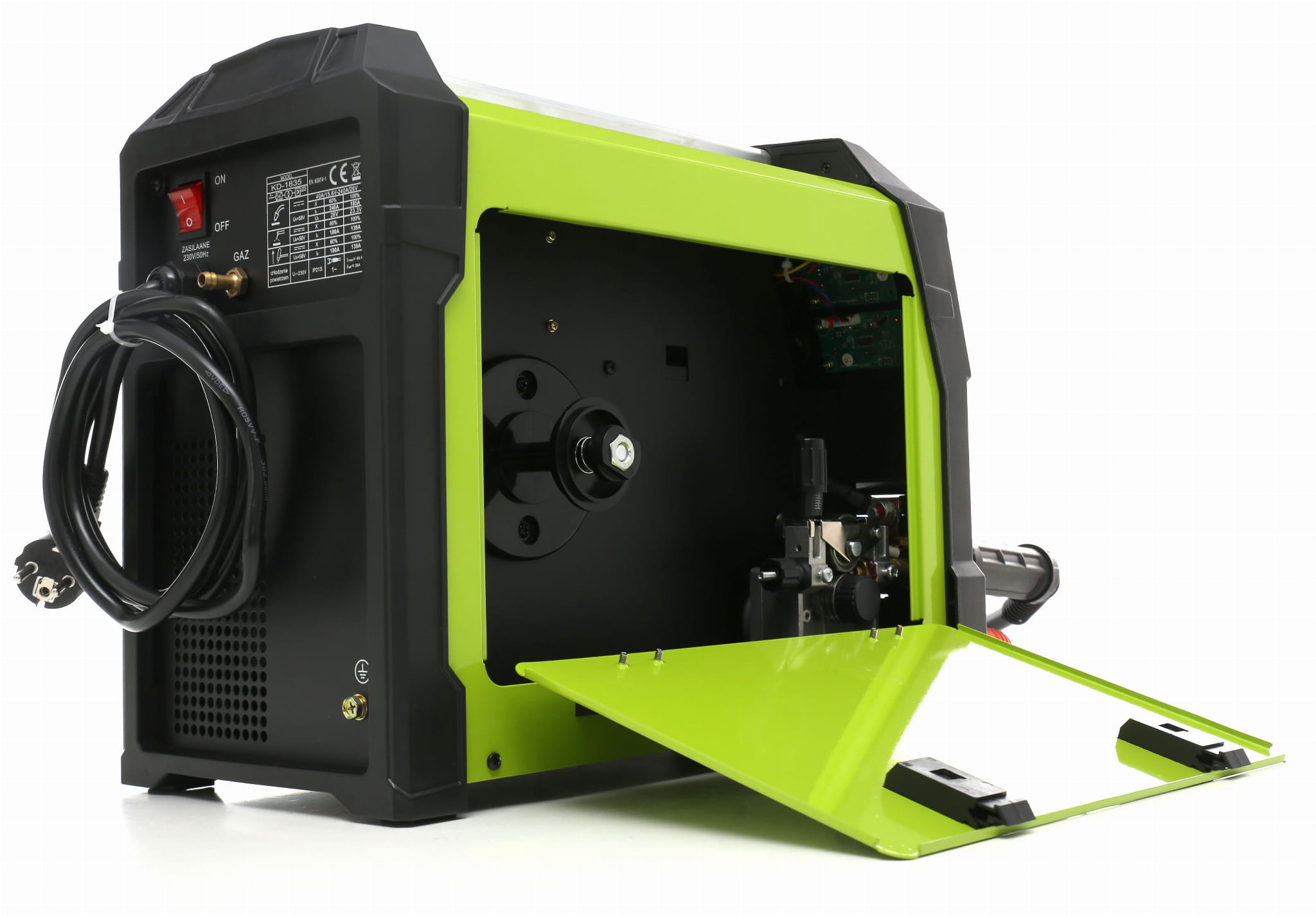 Praca w trybie MIG/MAG wymaga podłączenia butli z gazem osłonowym. Należy stosować wyłącznie atestowane butle spełniające obowiązujące normy. Butla z gazem nie jest elementem zestawu i wymaga oddzielnego zakupu. Przed pierwszym uruchomieniem należy zapoznać się z instrukcją obsługi w zakresie doboru parametrów spawania do rodzaju i grubości spawanego materiału.