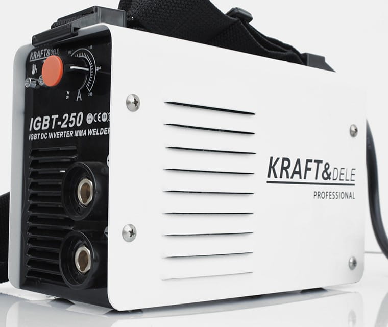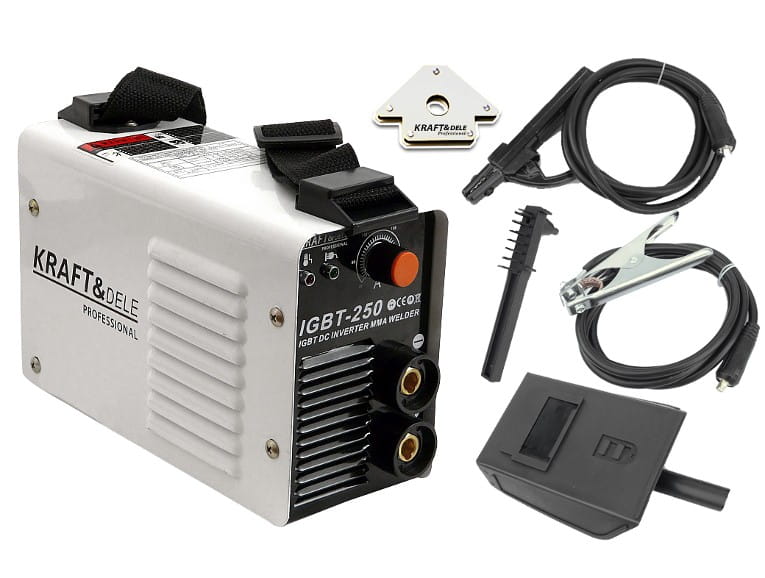 KD843 to spawarka inwertorowa do spawania metodą MMA (elektrodą otuloną), zasilana ze standardowej sieci jednofazowej 230V. Prąd spawania do 250A pozwala na pracę z szerokim zakresem elektrod stosowanych w spawalnictwie stalowym.