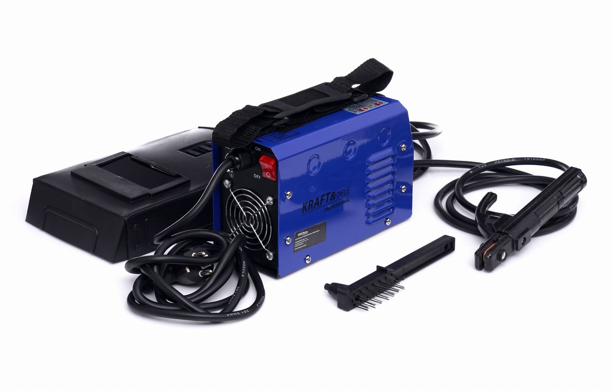 Spawarka inwertorowa MMA KD1865, przewód spawalniczy MMA DIN z uchwytem elektrody, przewód masowy DIN z zaciskiem, tarcza ochronna z szybą, młotek ze szczotką do żużla, instrukcja obsługi w języku polskim.