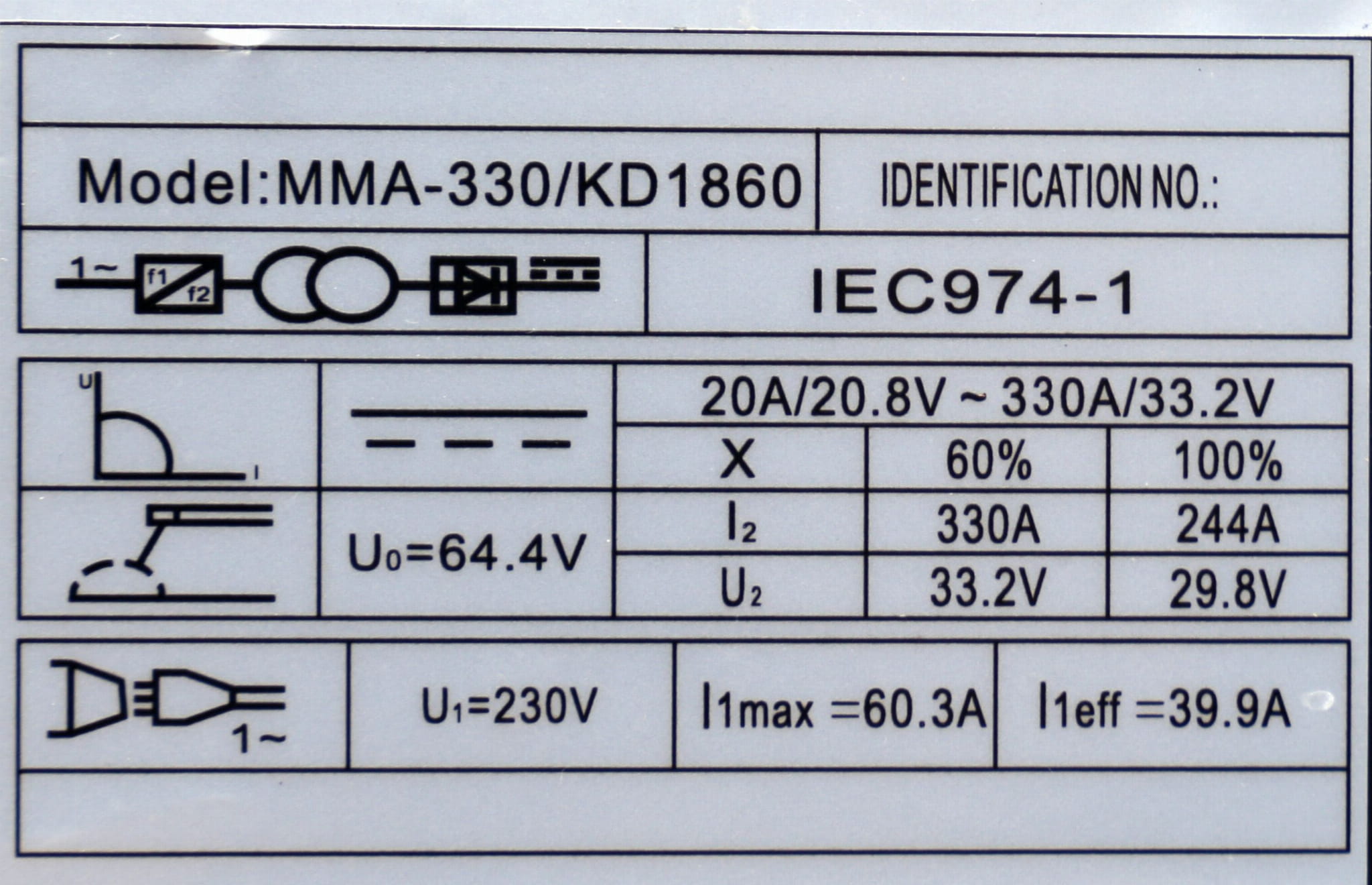 Spawarka inwertorowa MMA KD1860 to urządzenie oparte na tranzystorach IGBT z modulacją PWM, przeznaczone do spawania elektrodą otuloną w warunkach warsztatowych i terenowych. Zakres regulacji prądu 20–330A pozwala na pracę z elektrodami o średnicy od 1,6 do 3,25 mm.