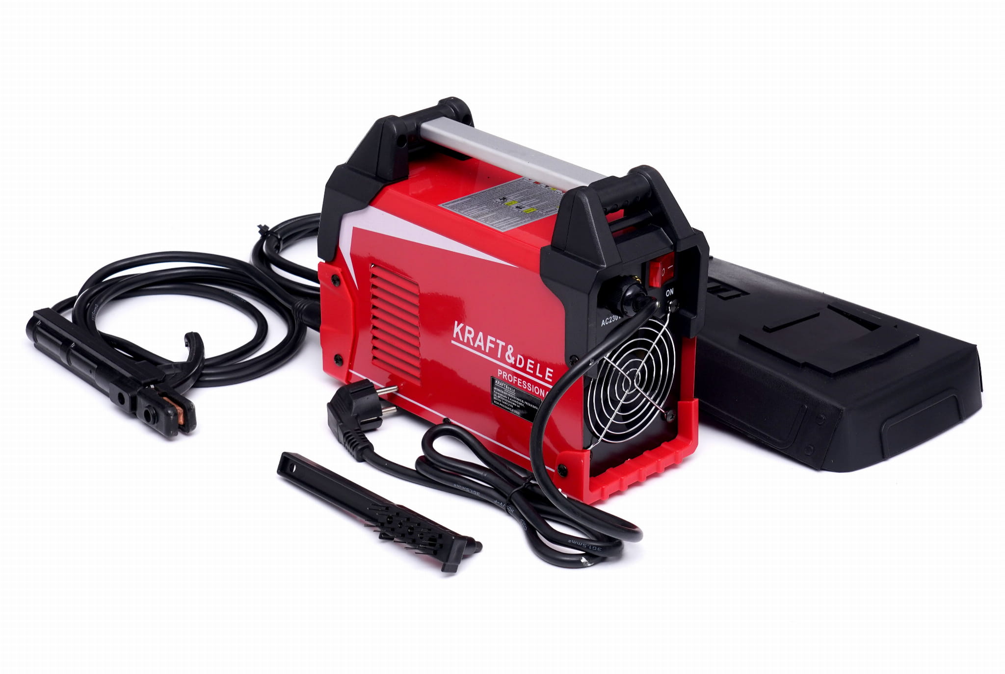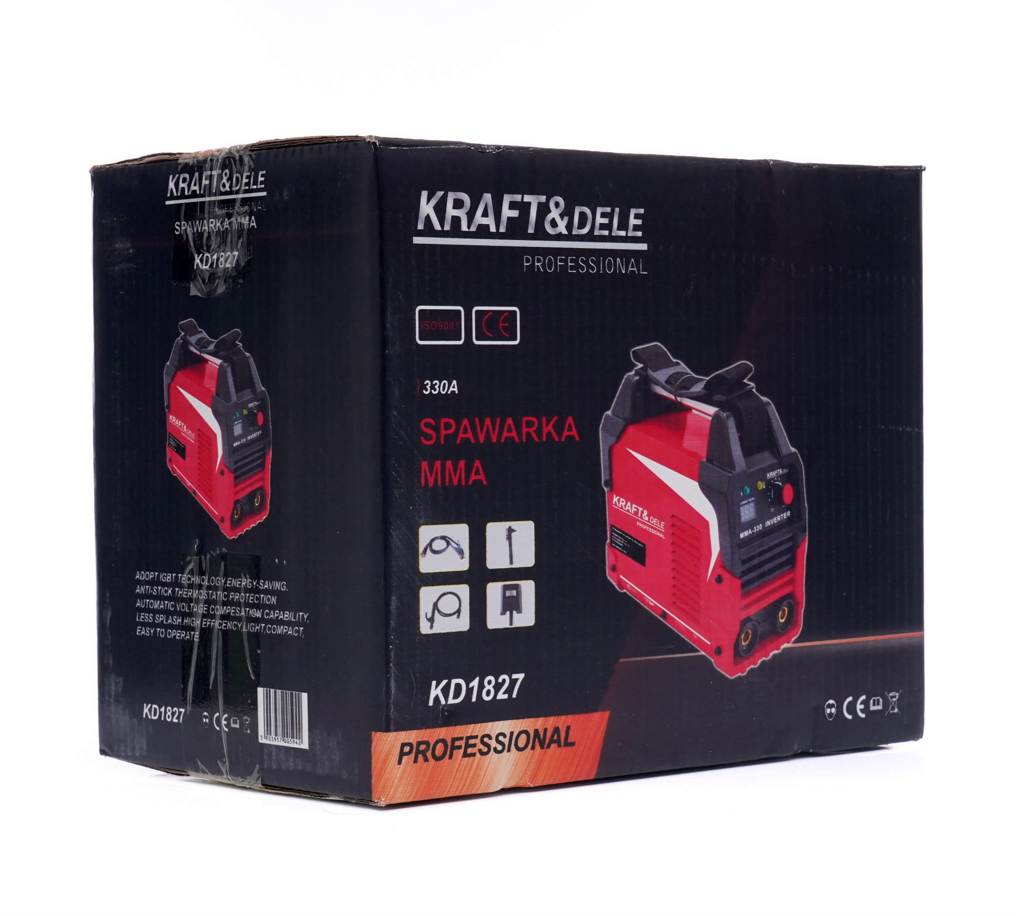 KD1827 to spawarka inwertorowa klasy MMA (spawanie elektrodą otuloną) oparta na tranzystorach IGBT. Urządzenie obsługuje elektrody w zakresie 1,6–4 mm i umożliwia płynną regulację prądu spawania, co pozwala dostosować parametry zarówno do cienkich blach, jak i grubszych elementów konstrukcyjnych. Cyfrowy wyświetlacz LCD ułatwia precyzyjne ustawienie wartości prądu bez konieczności szacowania na podstawie analogowej skali.