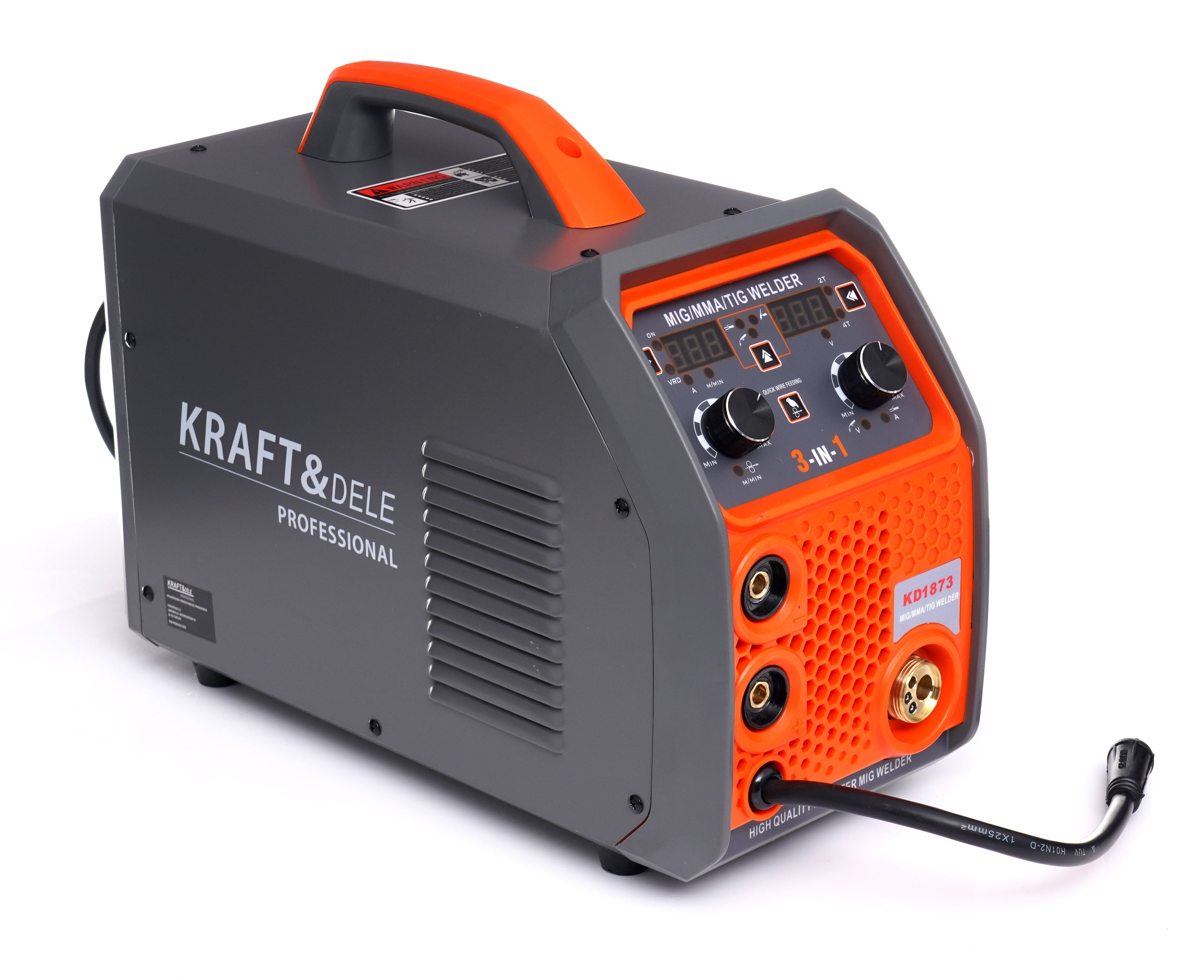 Spawarka MIG-MAG / TIG - MMA 4w1 KD1873 KRAFT&DELE to uniwersalna spawarka do różnych metali i zadań, z płynną regulacją prądu oraz czytelną kontrolą ustawień. Jeśli szukasz rozwiązania, które łączy prostą obsługę z szerokim zastosowaniem, model KD1873 będzie rozsądnym wyborem do warsztatu i prac terenowych.