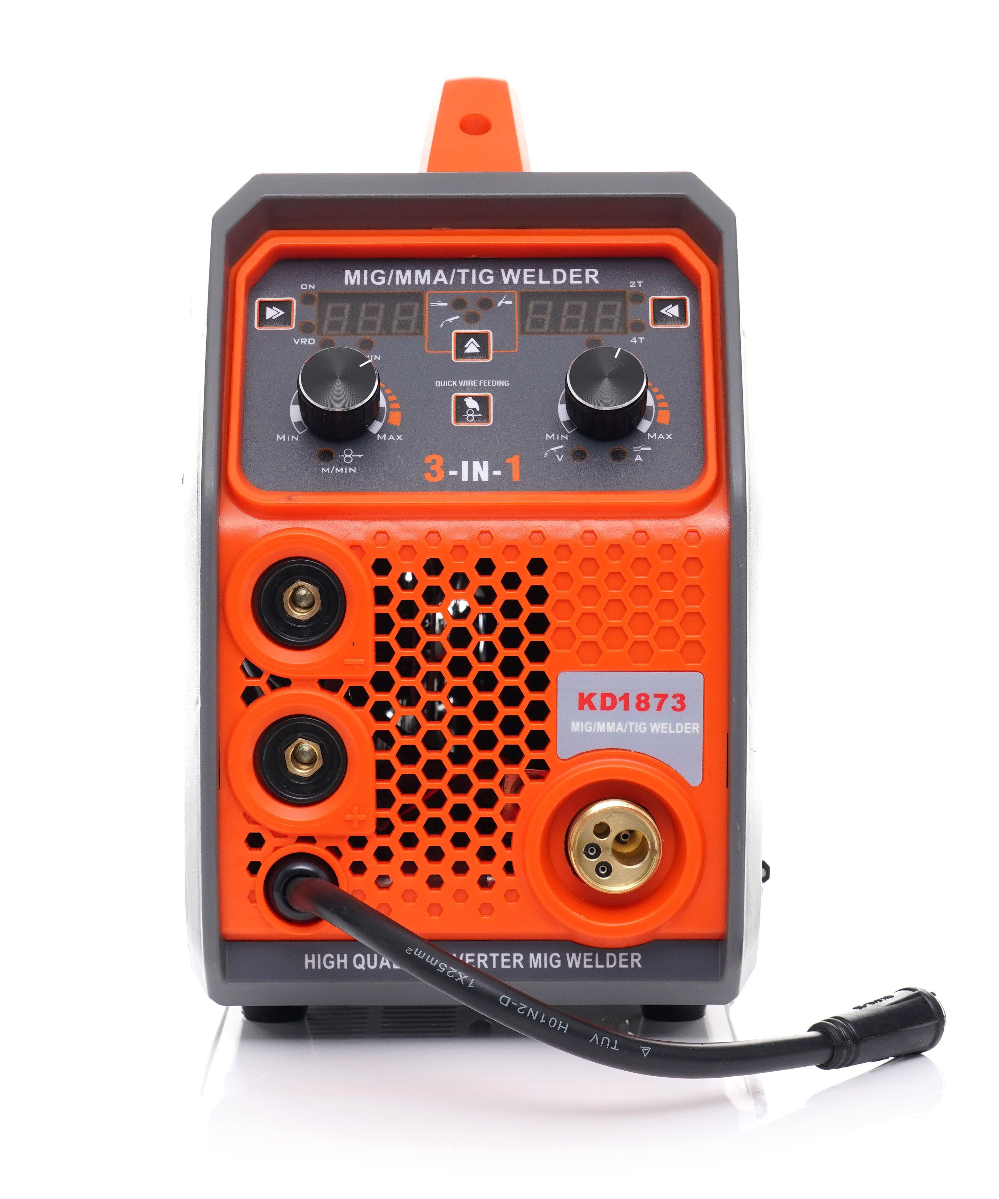 Spawarka MIG-MAG / TIG - MMA 4w1 KD1873 to uniwersalne urządzenie do spawania różnych metali w warsztacie i na budowie. Model KD1873 łączy prostą obsługę z precyzyjną regulacją, co ułatwia uzyskanie powtarzalnych spoin także przy pracy w zmiennych warunkach.