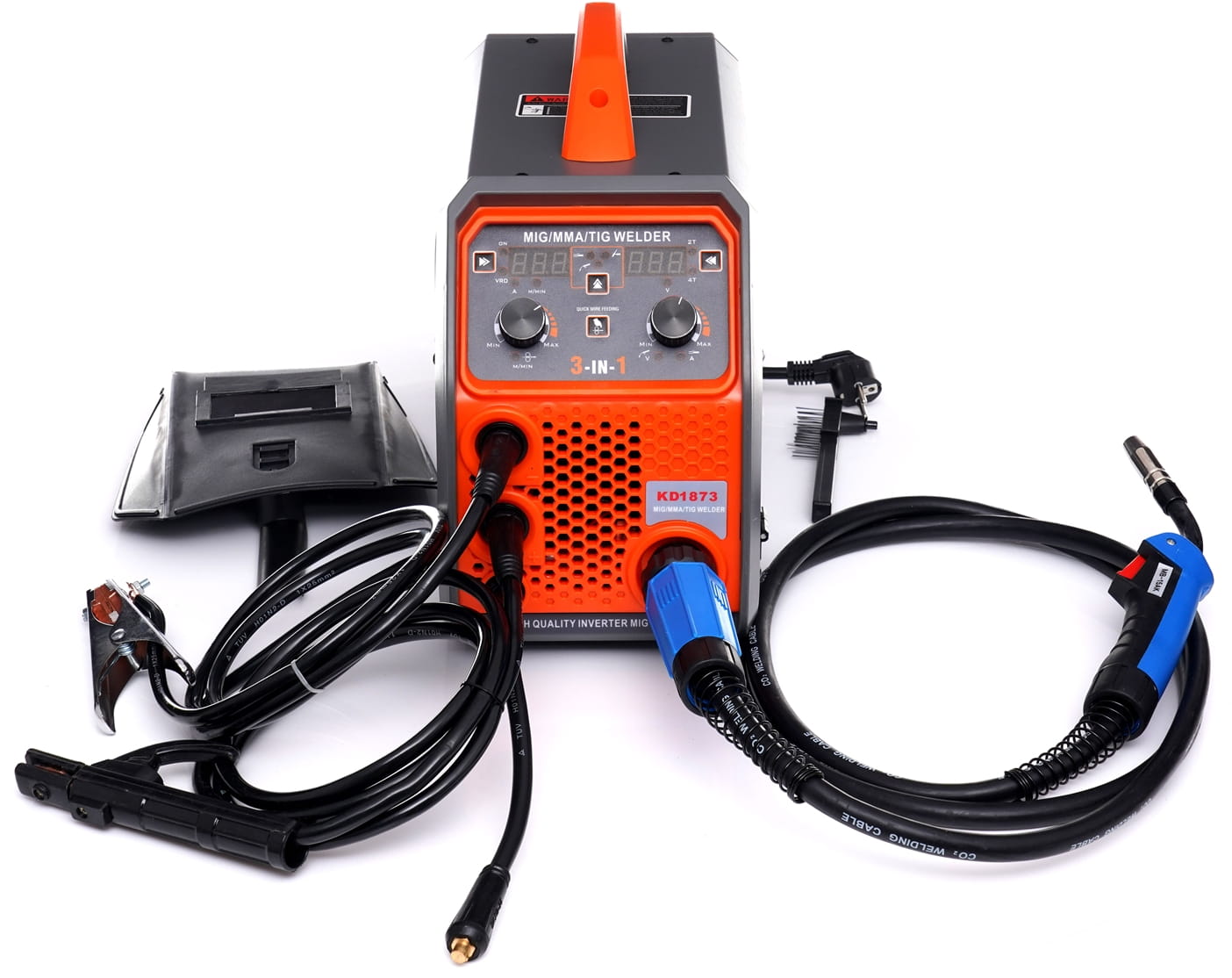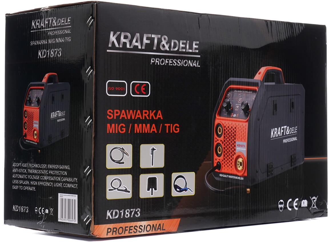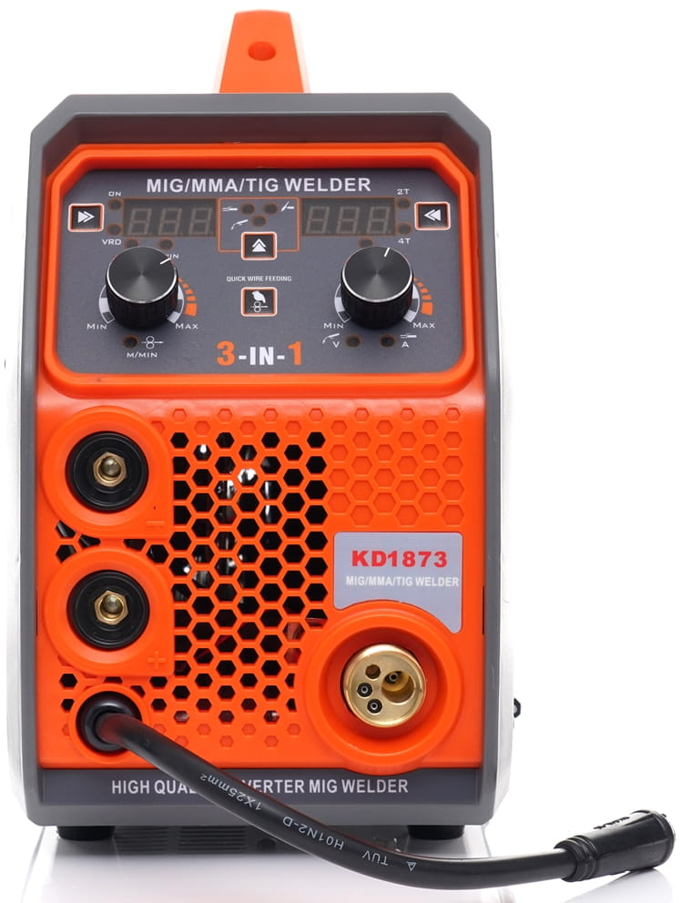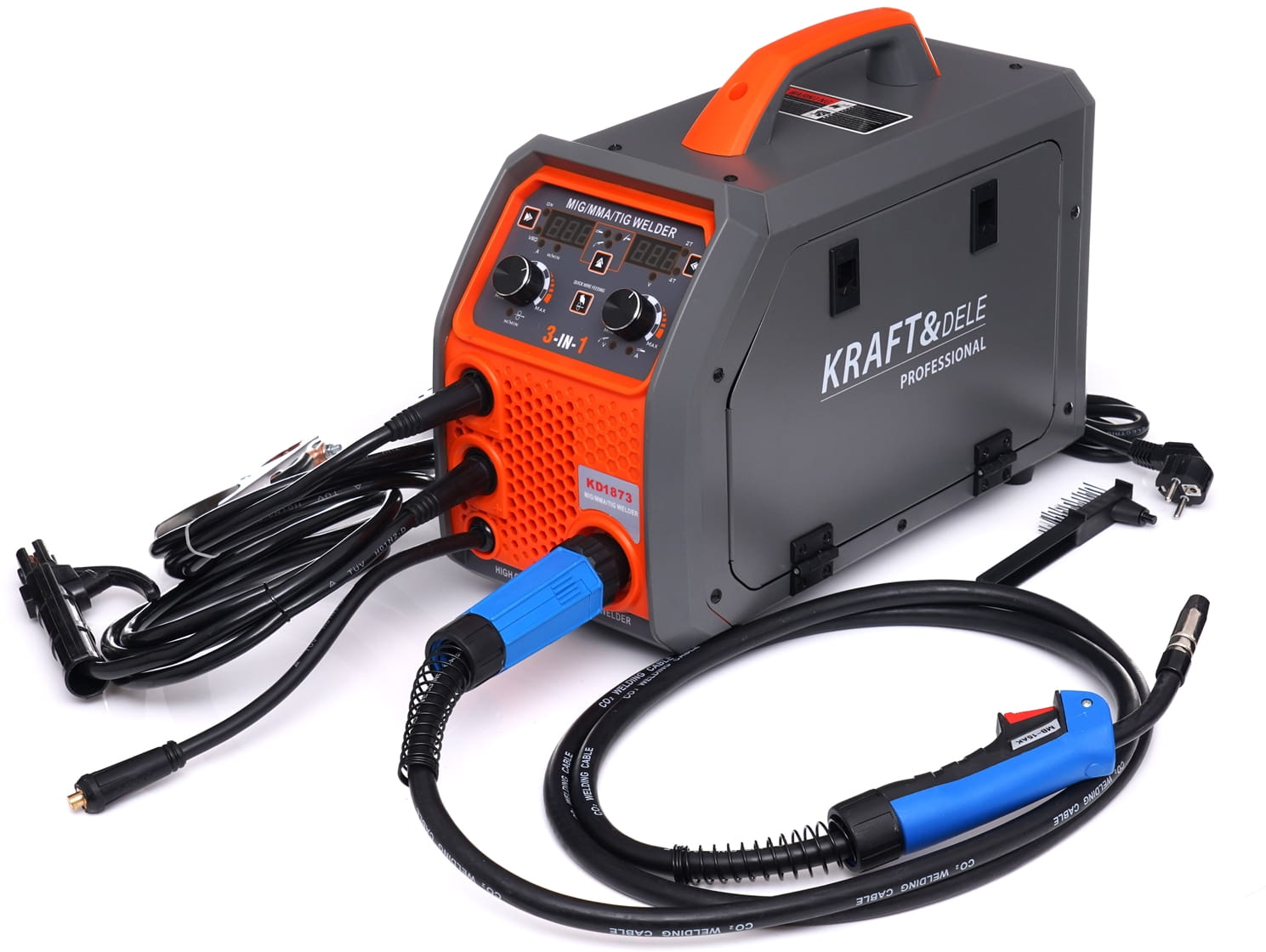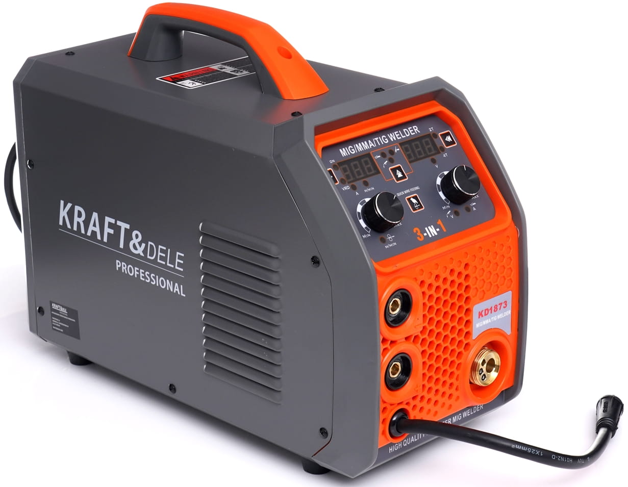 KD1873 to urządzenie spawalnicze obsługujące trzy metody pracy — MIG/MAG, TIG oraz MMA — w jednej obudowie. Zakres regulacji prądu od 20 do 275 A pozwala na spawanie materiałów o zróżnicowanej grubości, od cienkich blach po elementy konstrukcyjne. Urządzenie jest przeznaczone do zastosowań warsztatowych, serwisowych i montażowych.