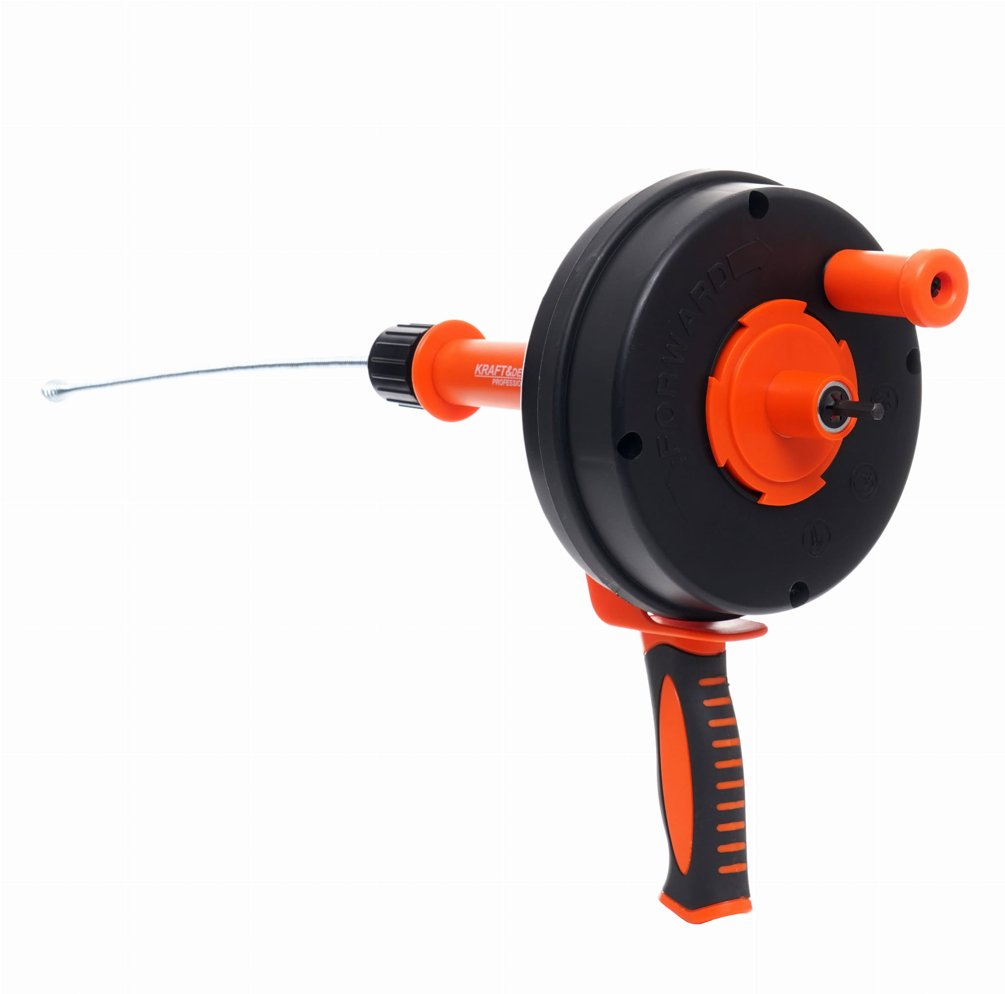 Bębnowa spirala kanalizacyjna przeznaczona do mechanicznego udrażniania rur przy użyciu wiertarki lub wkrętarki. Narzędzie skutecznie usuwa zatory organiczne i mechaniczne, z którymi środki chemiczne nie radzą sobie wystarczająco. Wykonana z ocynkowanego drutu sprężynowego, przeznaczona zarówno do użytku domowego, jak i zawodowego.
