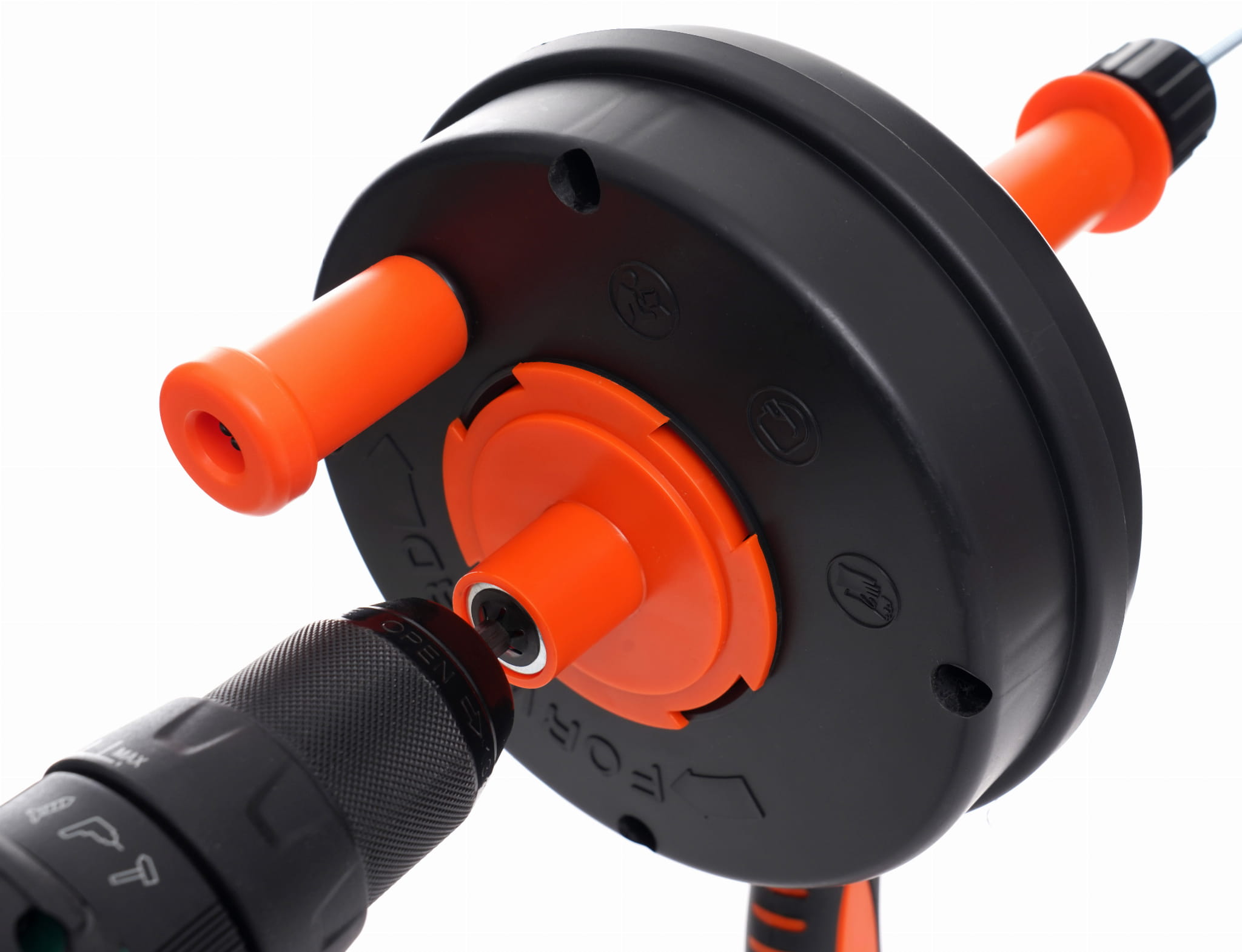 Spirala wyposażona jest w uchwyt kompatybilny ze standardowym uchwytem wiertarki lub wkrętarki. Ruch obrotowy narzędzia przekształcany jest w ruch posuwisto-obrotowy spirali, co pozwala na skuteczne penetrowanie i rozbijanie zatorów wewnątrz rury.