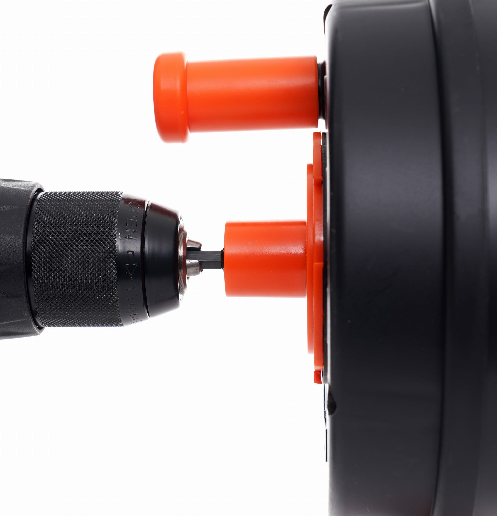 Uchwyt spirali przystosowany jest do standardowego trójszczękowego uchwytu wiertarki lub wkrętarki. Zaleca się stosowanie wiertarki z regulacją prędkości obrotowej oraz funkcją obrotów w prawo. Praca z nadmierną prędkością może powodować niekontrolowane ruchy bębna i utrudniać precyzyjne prowadzenie narzędzia.