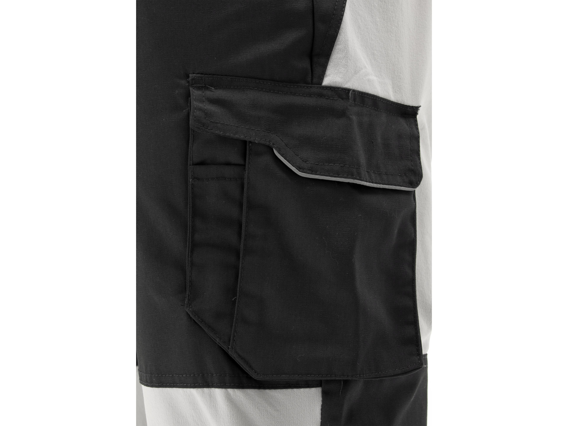 Elastyczne wstawki z poliamidu (94%) i elastanu (6%) umożliwiają rozciąganie materiału we wszystkich kierunkach. Rozwiązanie eliminuje ograniczenia ruchowe podczas schylania, klękania czy pracy w pozycji przysiadu. Materiał wstawek o gramaturze 270 g/m² zachowuje trwałość mimo zwiększonej elastyczności.
