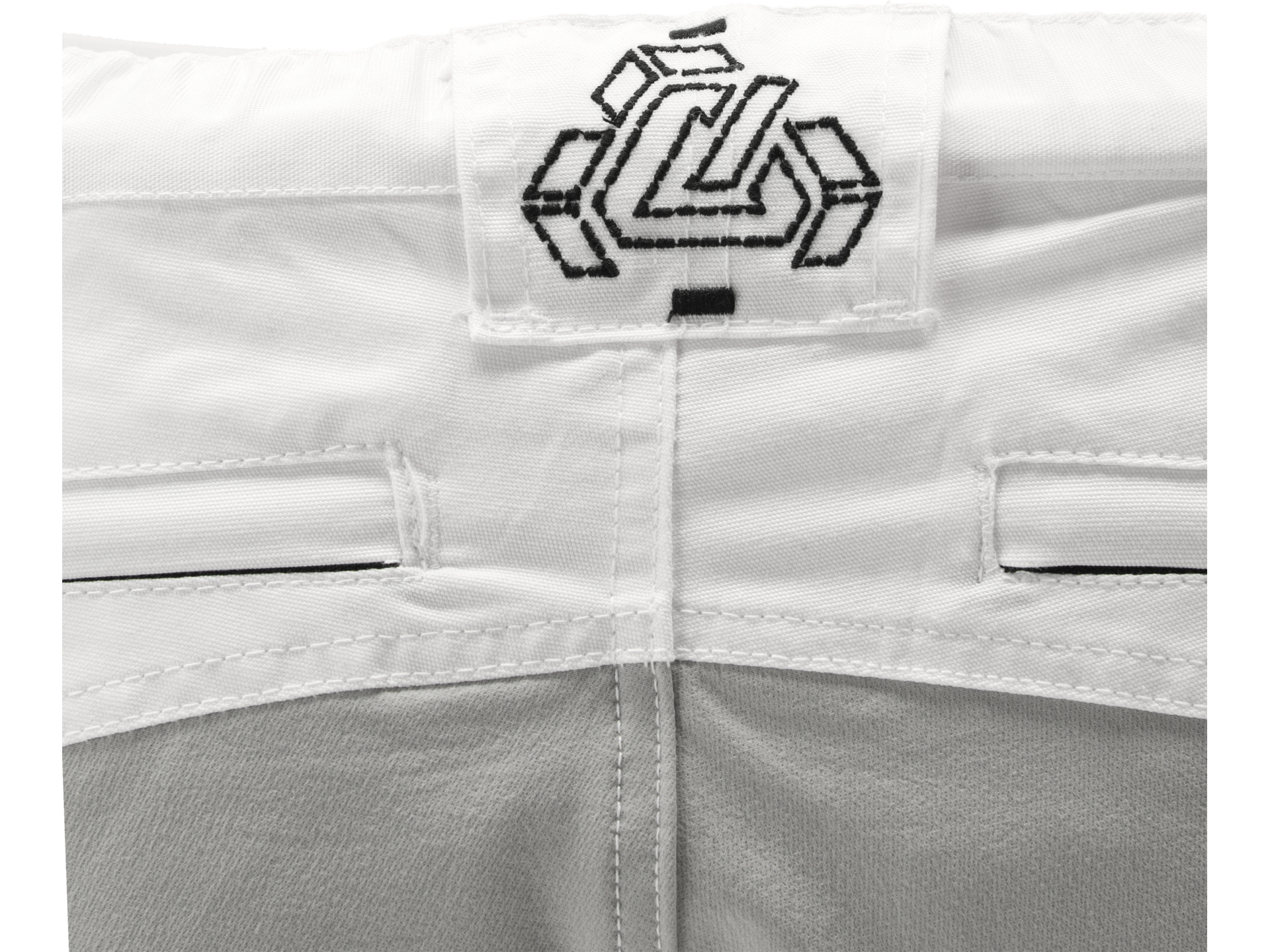 Guziki zatrzaskowe w dolnej części nogawek pozwalają na skrócenie spodni o około 4 cm bez konieczności szycia. Funkcja przydatna przy różnicach wzrostu lub preferencjach dotyczących długości w kontekście rodzaju obuwia roboczego.