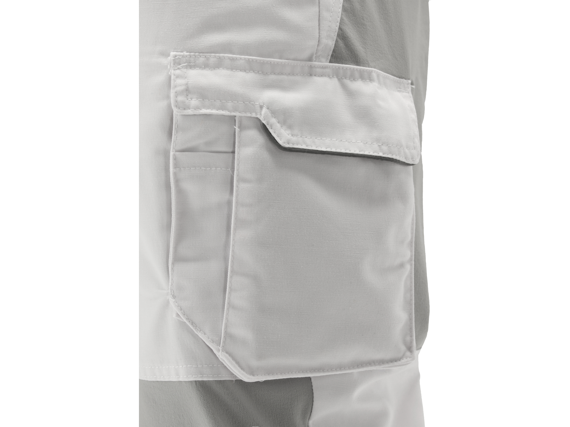 Profesjonalne spodnie robocze z rozciągliwymi wstawkami 4way stretch w strategicznych miejscach. Konstrukcja łącząca mieszankę poliestrowo-bawełnianą o gramaturze 260 g/m² z elastycznymi wstawkami z poliamidu i elastanu (270 g/m²). Model wyposażony w 11 kieszeni roboczych z możliwością regulacji długości nogawek.