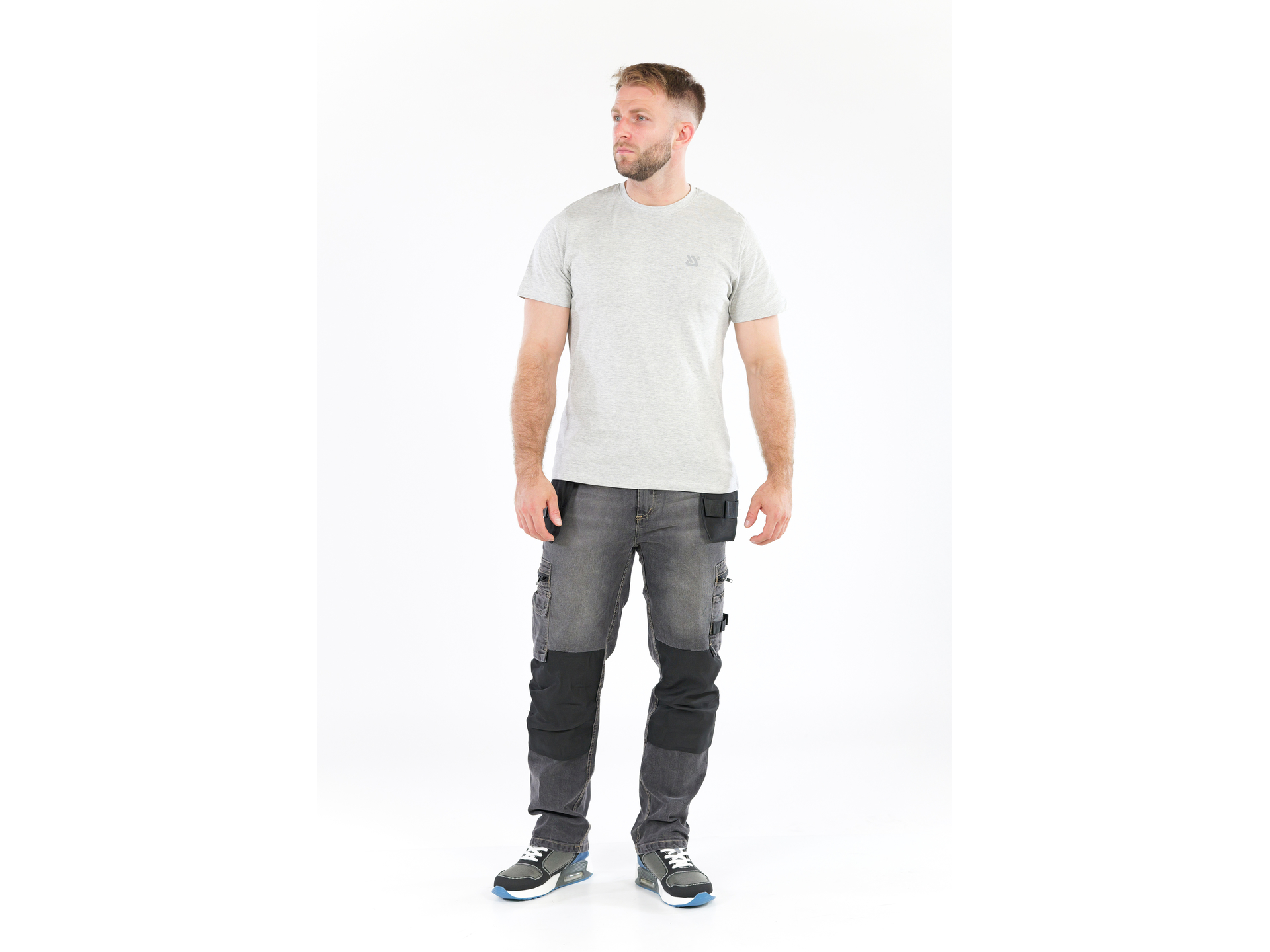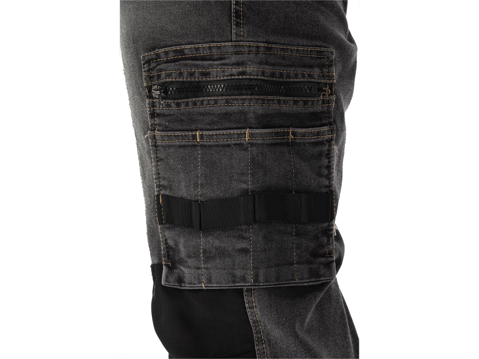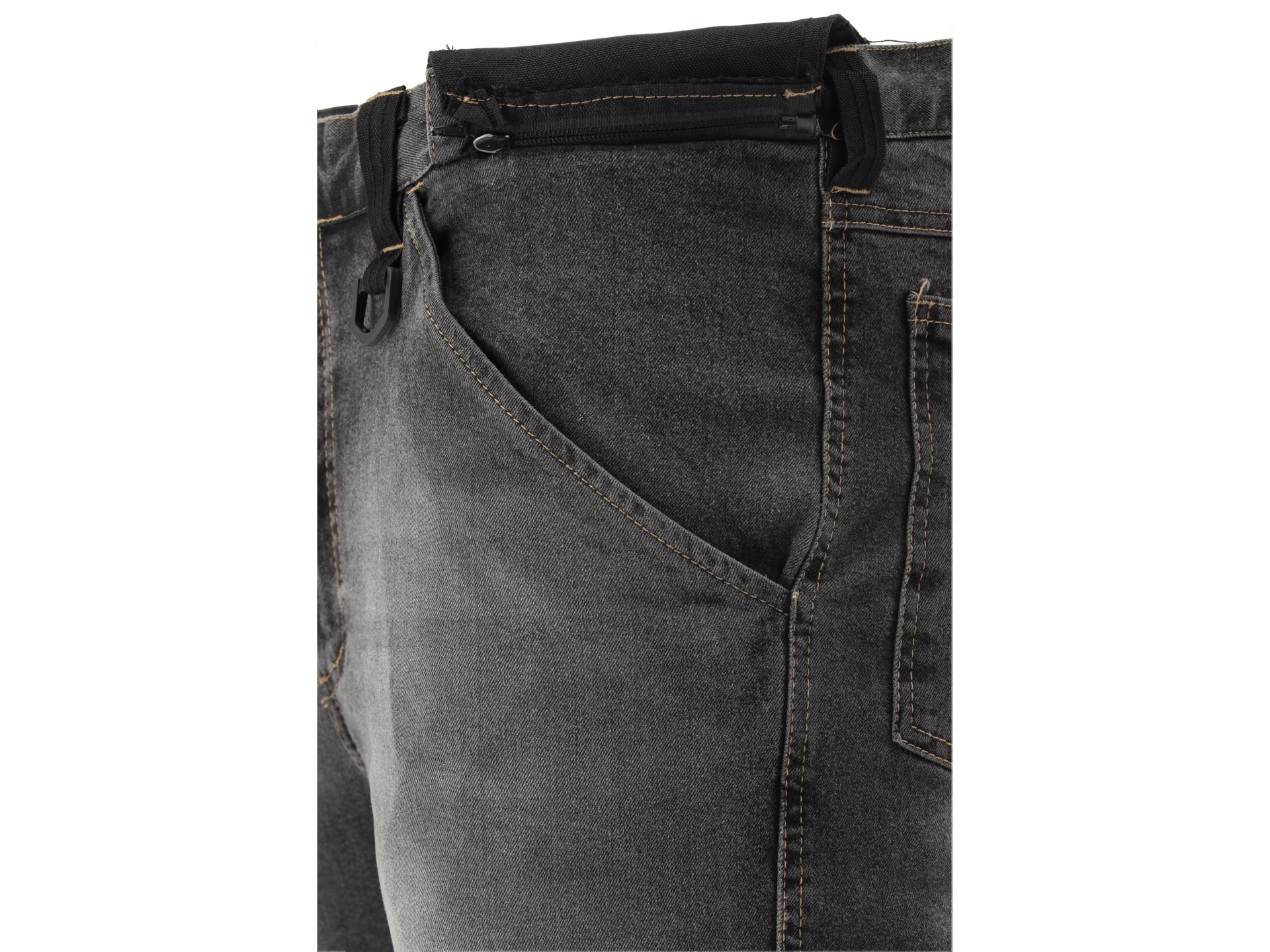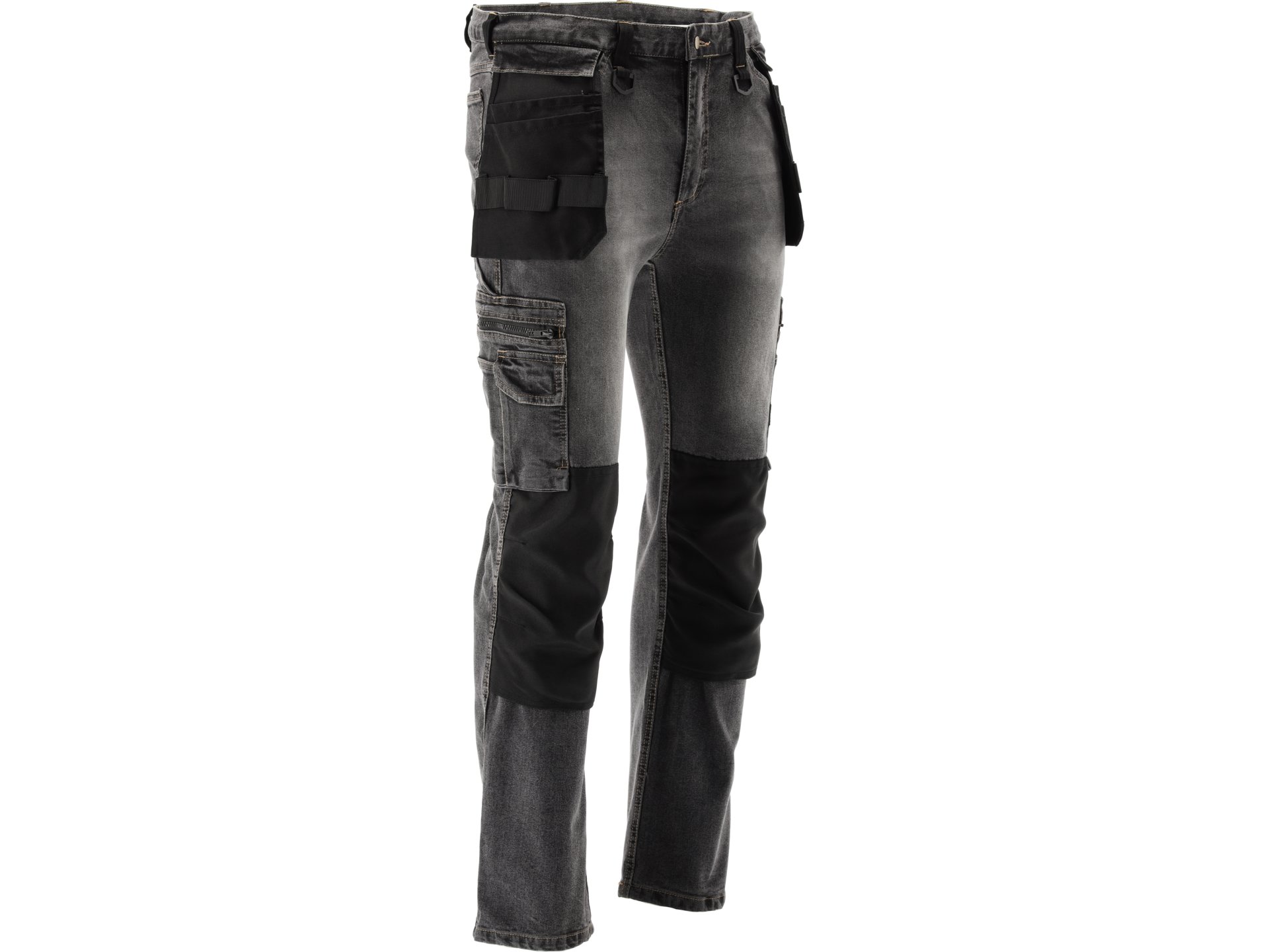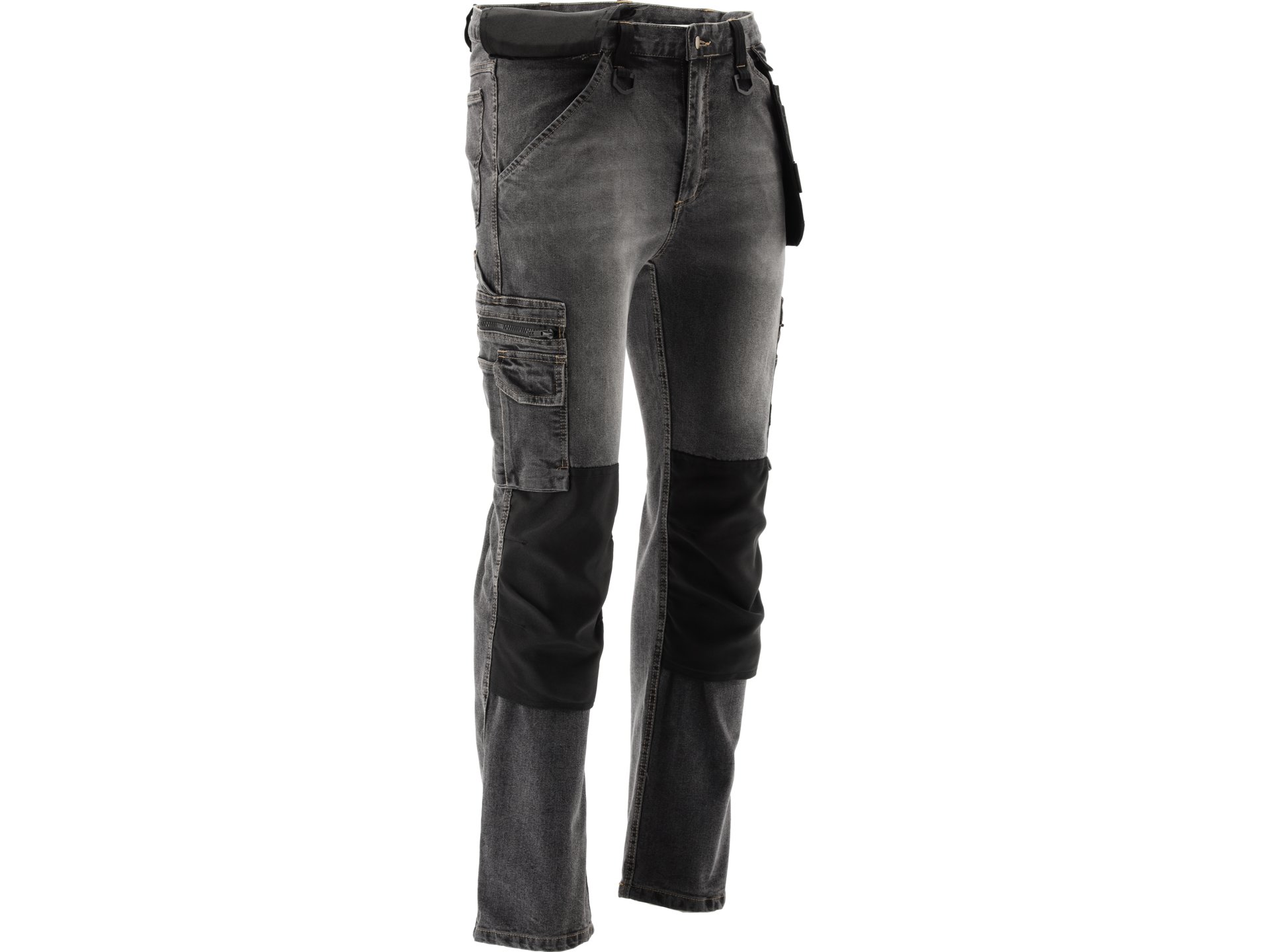 Spodnie robocze z elastycznego jeansu przeznaczone do prac montażowych, stolarskich i ogólnobudowlanych. Wykonane z mieszanki bawełny, poliestru, wiskozy i elastanu o gramaturze 325 g/m², zapewniają swobodę ruchów przy zachowaniu wytrzymałości materiału.
