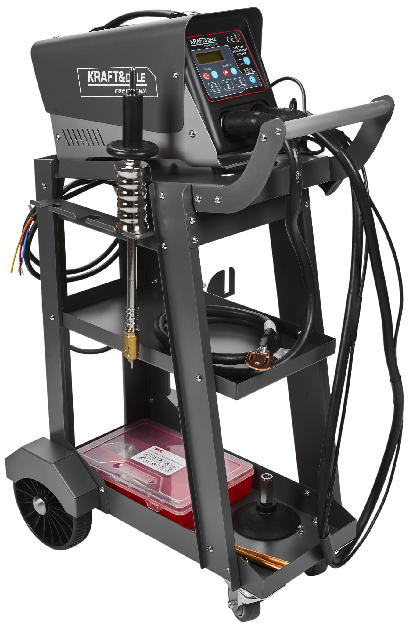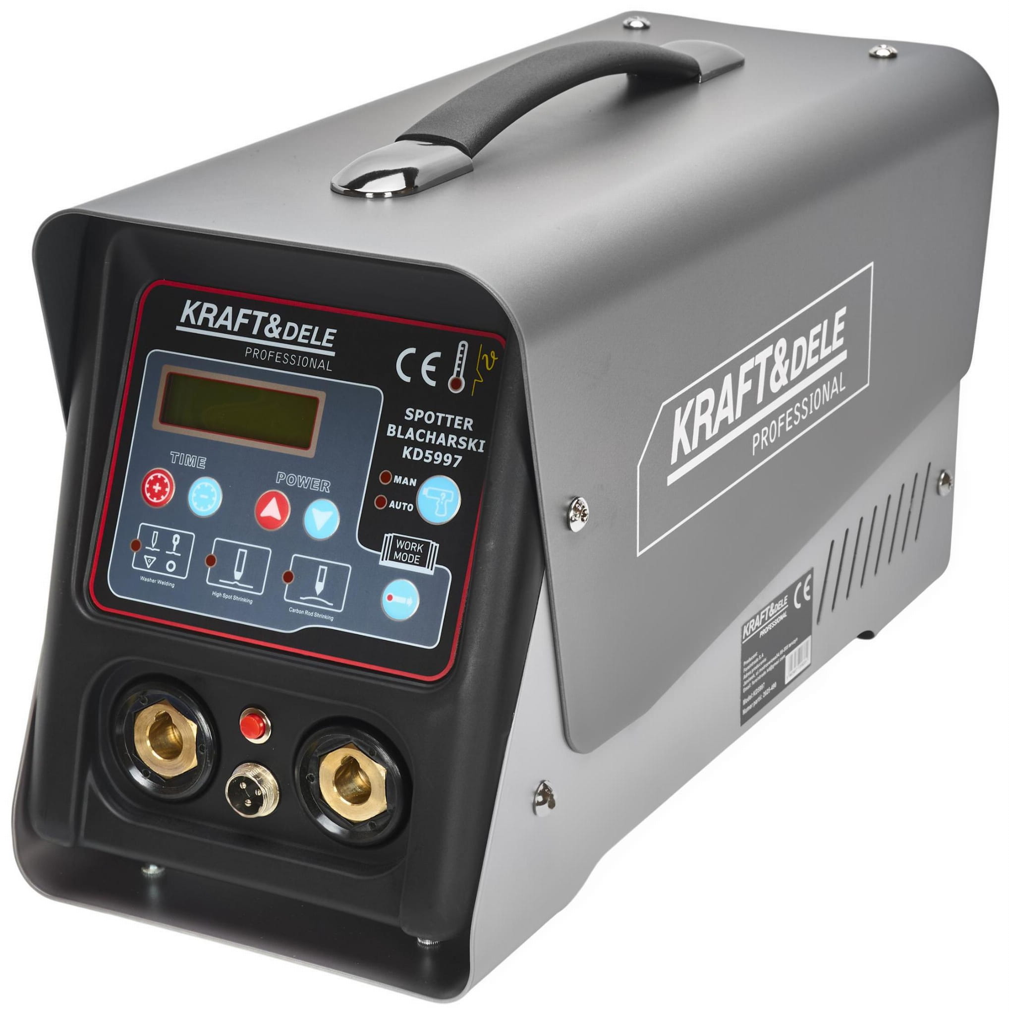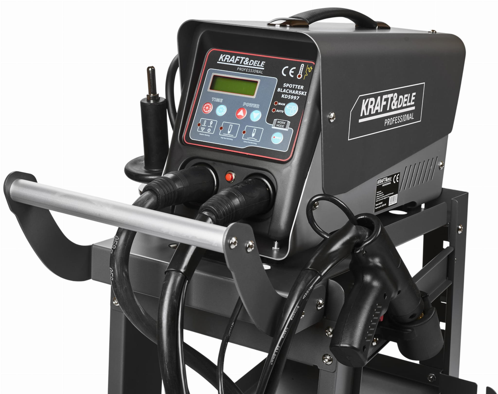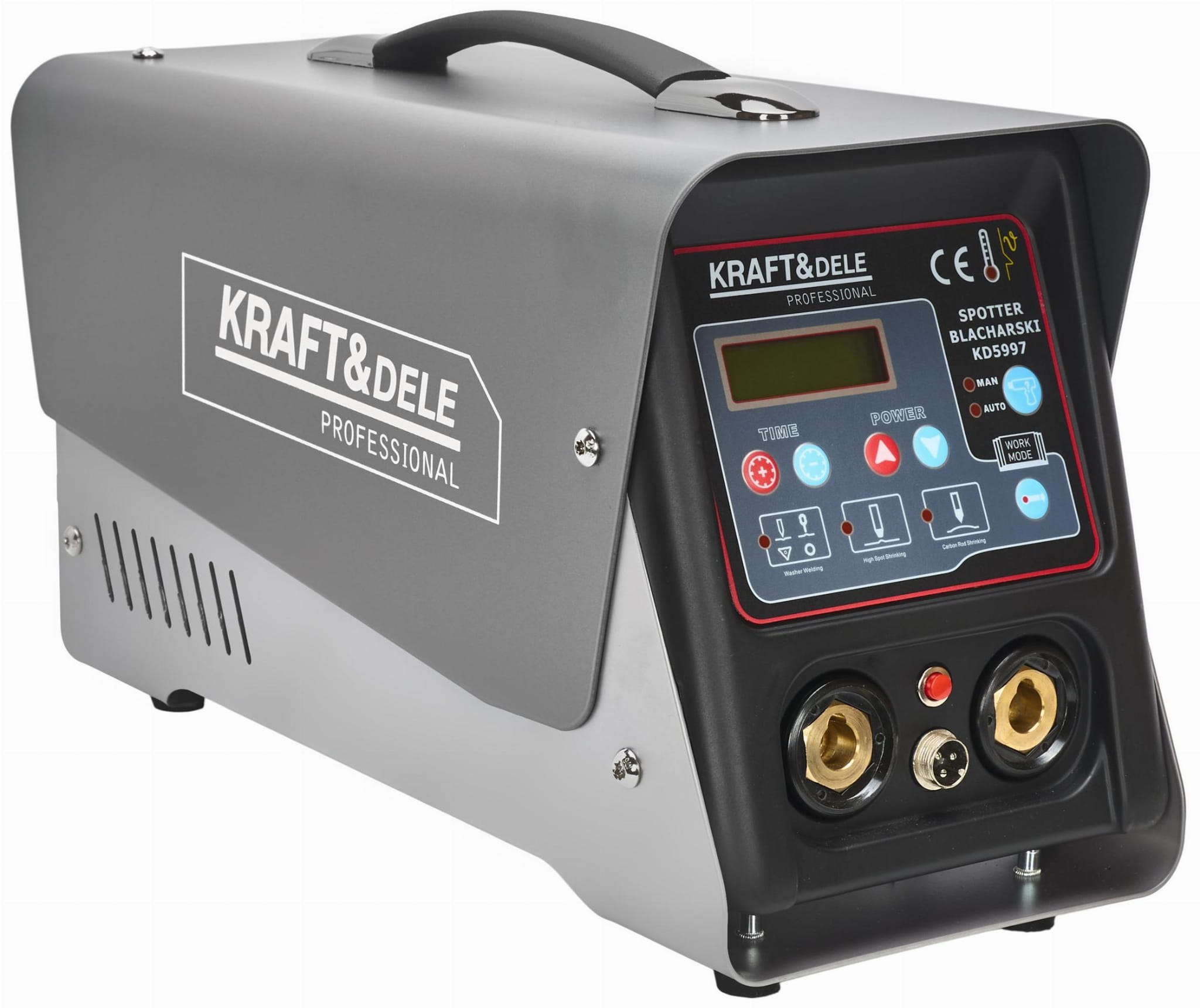 KD5997 to spotter blacharski przeznaczony do profesjonalnej naprawy karoserii samochodowej — prostowania elementów nadwozia, spawania punktowego blach oraz przygotowania powierzchni pod prace lakiernicze. Urządzenie pracuje w trybie ciągłym i obsługuje wiele metod spawania, co czyni je kompletnym rozwiązaniem dla warsztatów blacharskich i serwisów samochodowych.