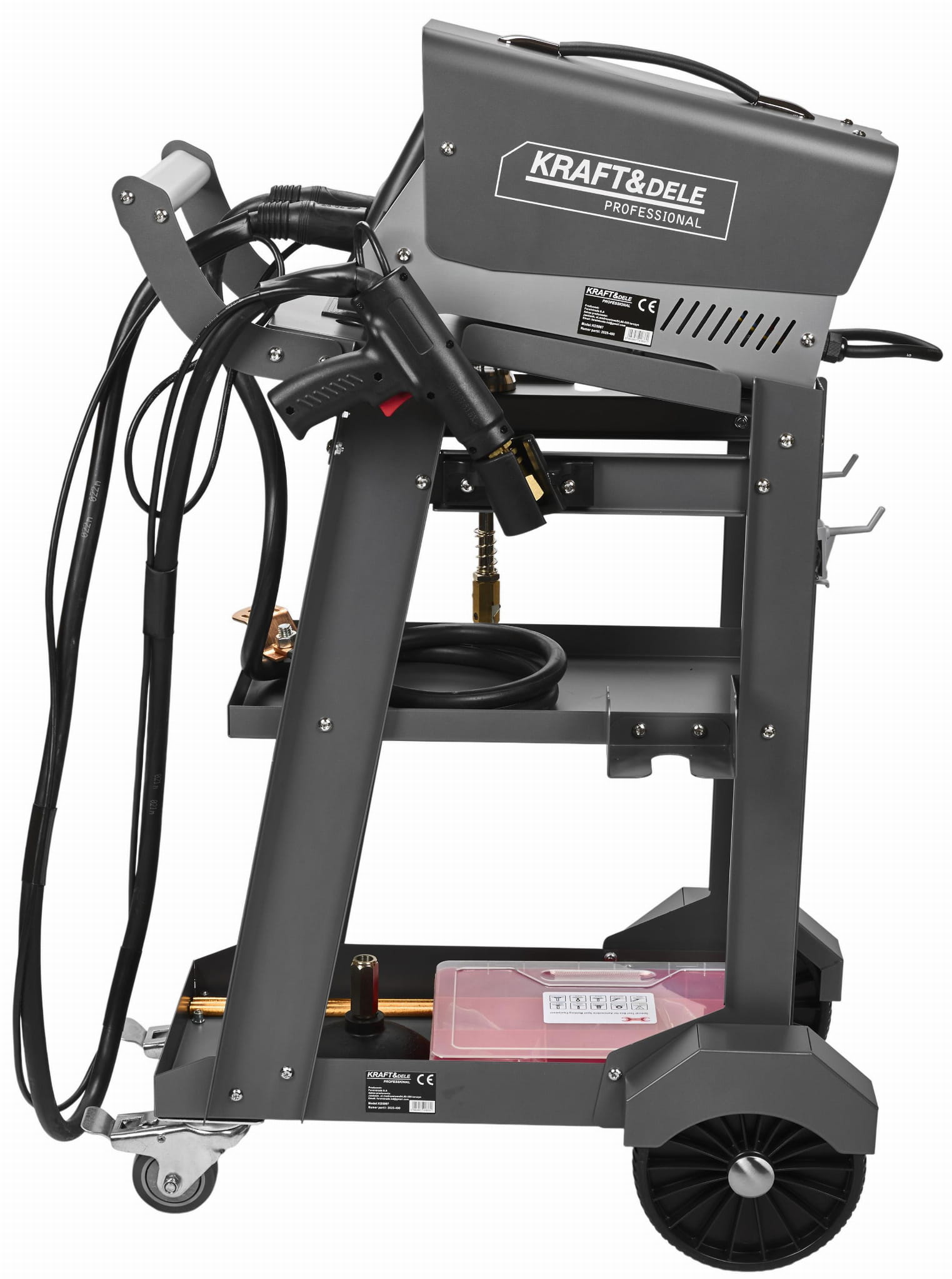 Spotter blacharski KD5997 — wózek z 4 kołami (2 skrętne z hamulcem) — przyssawka próżniowa (udźwig 190 kg) — instrukcja obsługi w języku polskim — gwarancja 12 miesięcy.