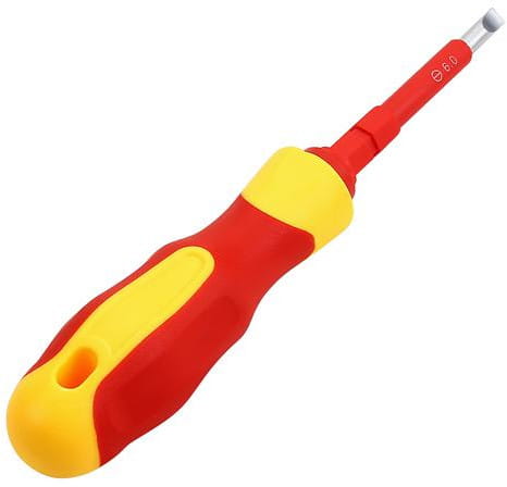 KD5971 to zestaw 14 śrubokrętów z izolacją do 1000V AC, przeznaczonych do bezpiecznej pracy przy instalacjach elektrycznych. Zestaw obejmuje końcówki płaskie oraz krzyżowe typu PH i PZ w różnych rozmiarach, co pozwala na obsługę szerokiego zakresu złączy i elementów elektrycznych.