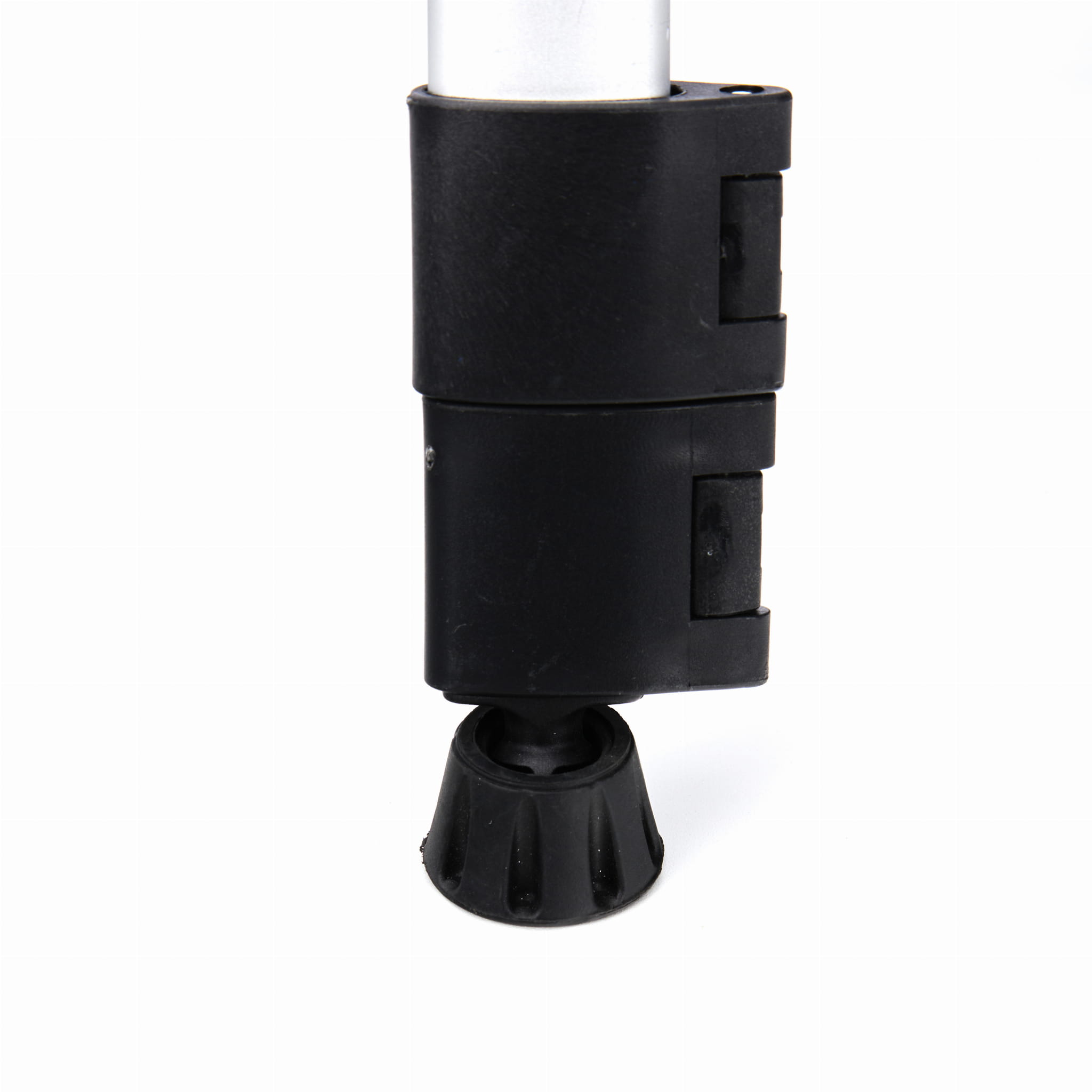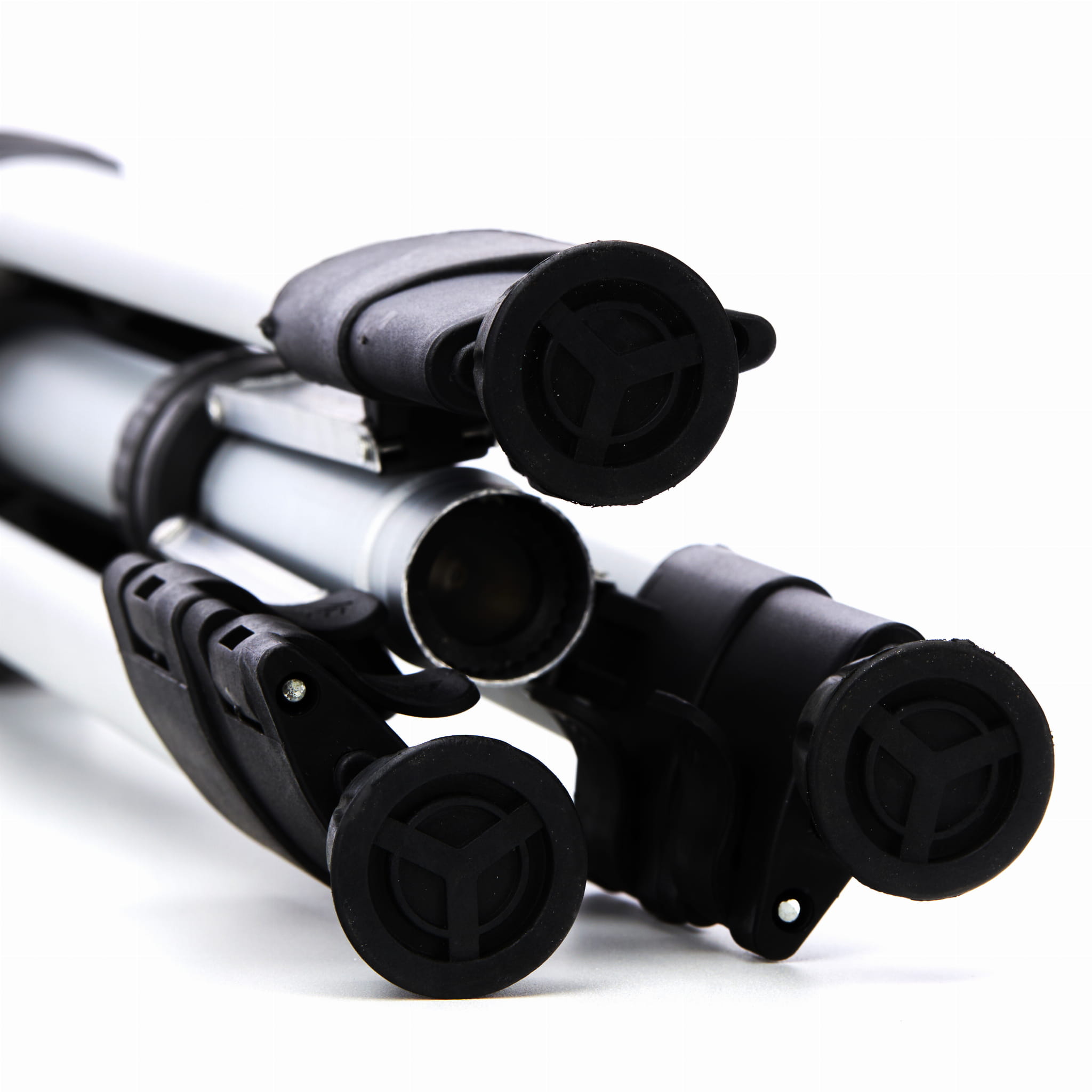 Końcówki nóg statywu wyposażono w nakładki gumowe, które zwiększają tarcie o podłoże — zarówno na gładkich posadzkach, jak i na nierównym terenie. Stabilna podstawa minimalizuje ryzyko przesunięcia statywu podczas pracy, co bezpośrednio wpływa na dokładność pomiarów.