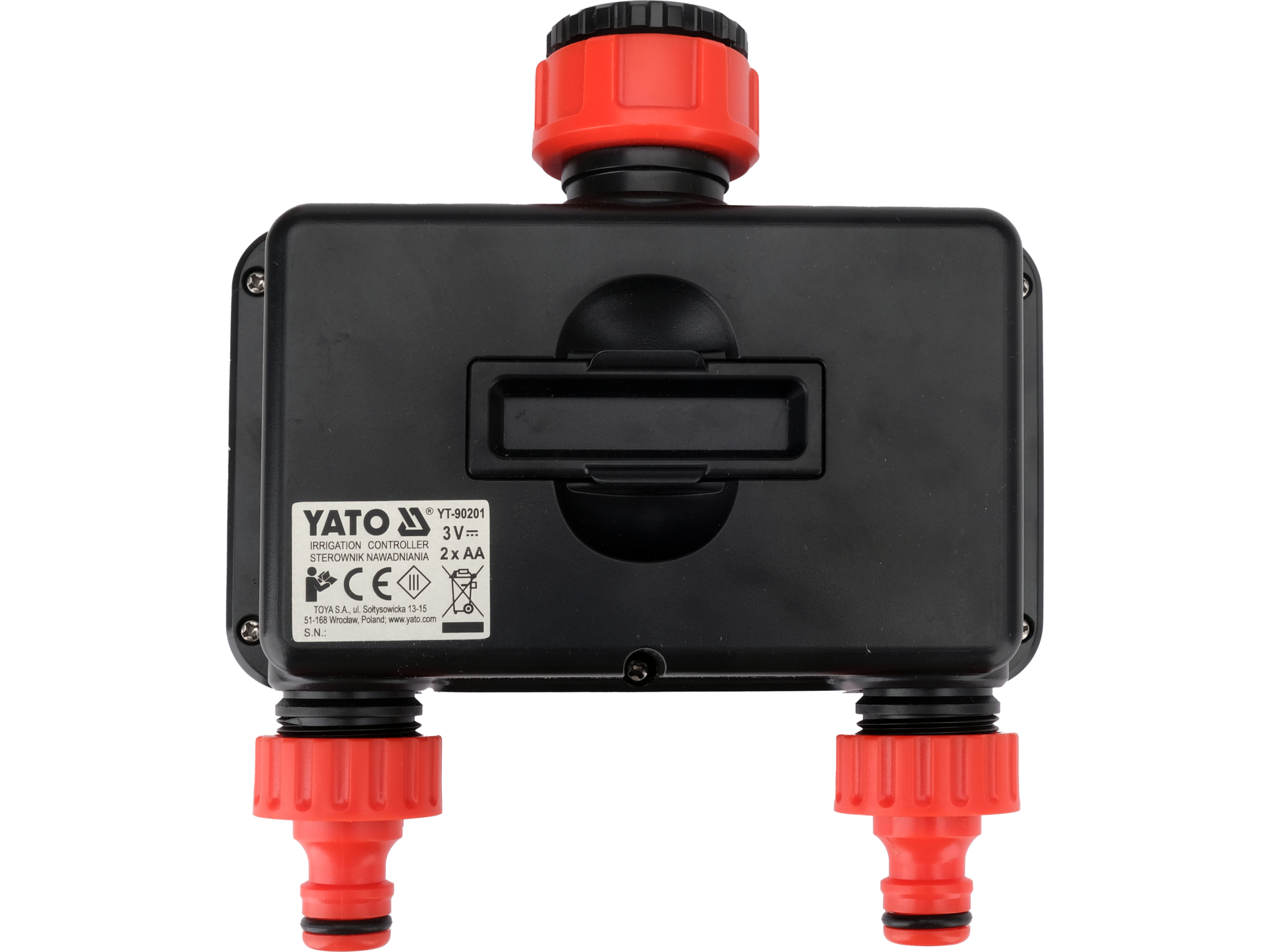 Cyfrowy sterownik nawadniania umożliwiający niezależne zarządzanie dwoma strefami podlewania. Programator wyposażony w wyświetlacz LCD pozwala na ustawienie do 6 cykli dziennie dla każdej strefy, z czasem pracy od 1 minuty do 6 godzin. Zasilany bateryjnie, montowany bezpośrednio na kranie.