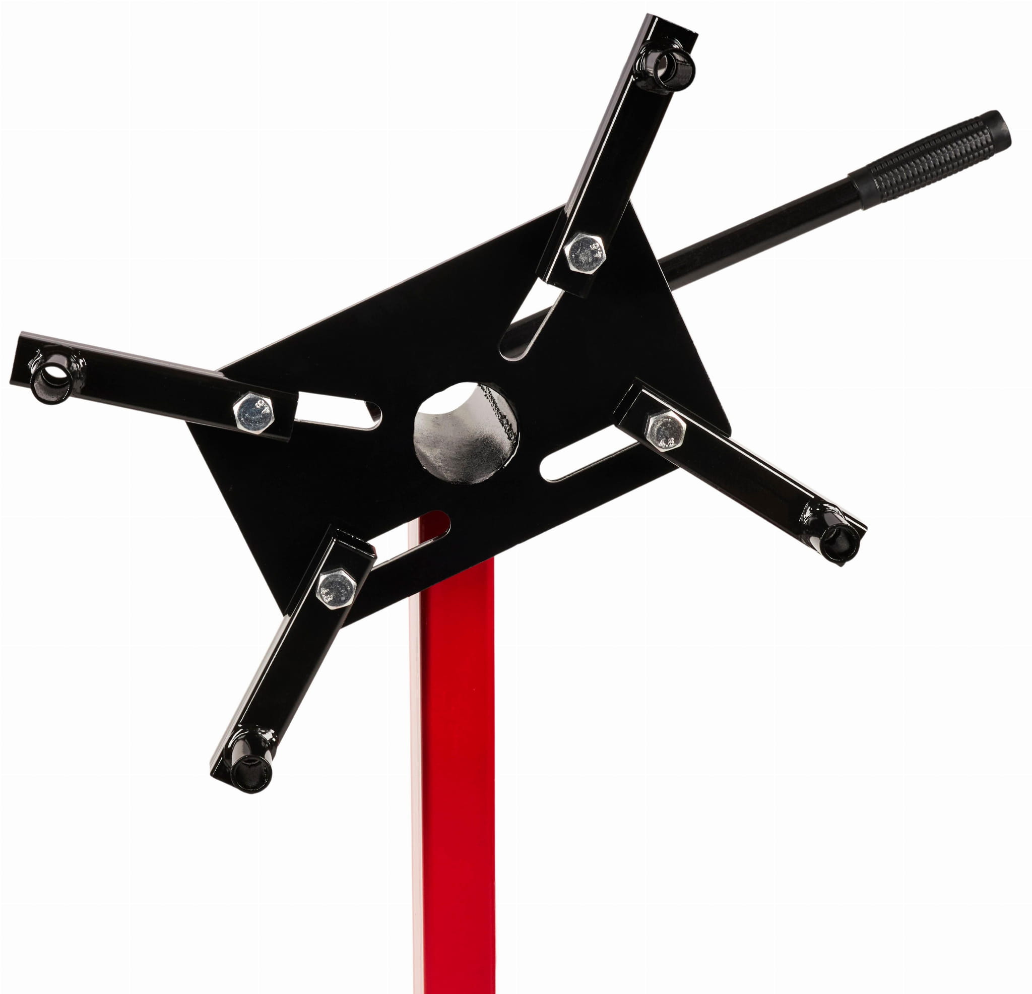Cztery regulowane łapy montażowe pozwalają dopasować mocowanie do różnych gabarytów silników i skrzyń biegów. Możliwość obrotu o pełne 360° umożliwia dostęp do każdej strony jednostki napędowej bez jej demontażu ze stojaka. Mechanizm blokady zabezpiecza przed niekontrolowanym obróceniem podczas pracy.