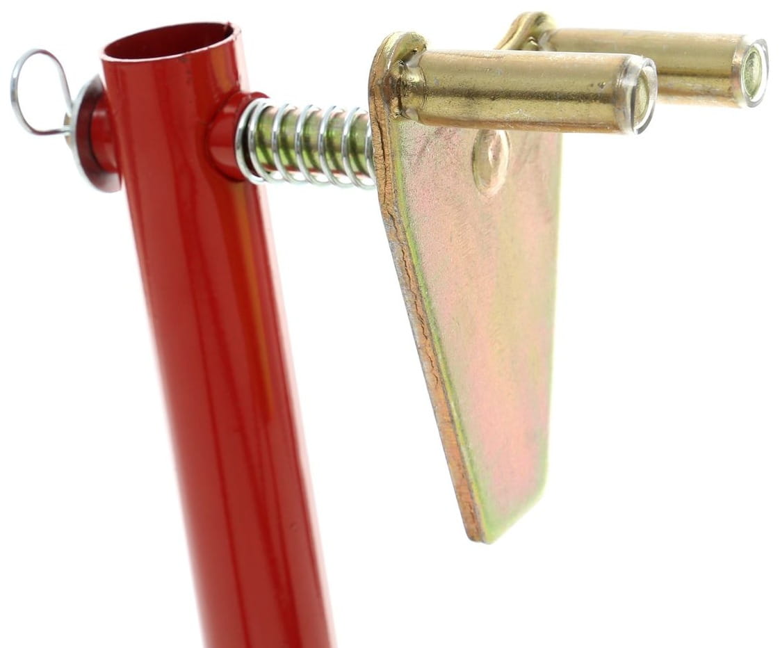Uchwyty z mechanizmem sprężynowym dopasowują się do wahacza motocykla bez konieczności użycia dodatkowych narzędzi. Szybkie mocowanie skraca czas przygotowania do pracy i zmniejsza ryzyko zsunięcia się stojaka podczas użytkowania.