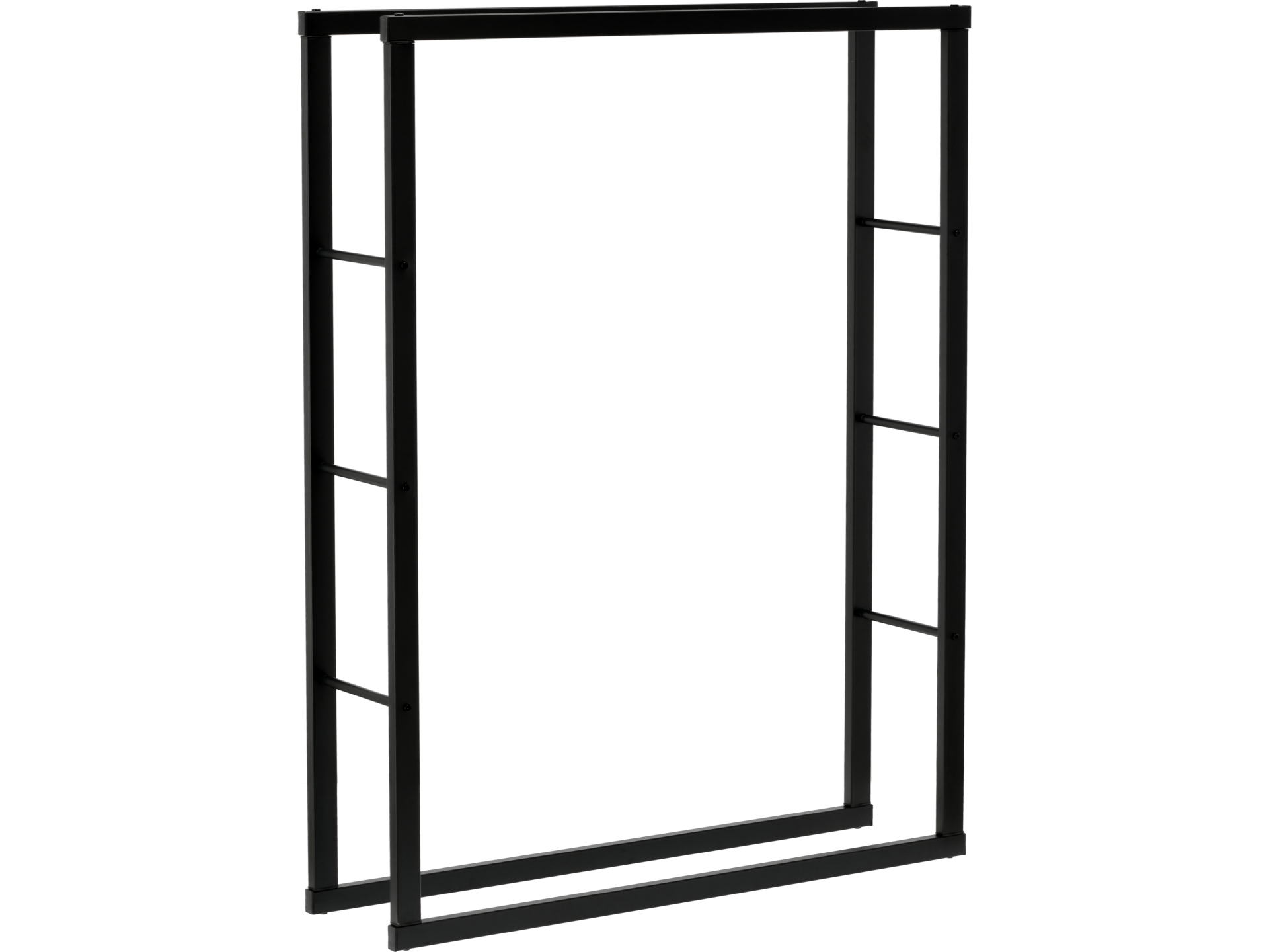 Wykończenie w matowej czerni maskuje drobne zabrudzenia powstające przy kontakcie z korą i pyłem drzewnym. Neutralny kolor ułatwia dopasowanie stojaka do różnych aranżacji – od nowoczesnych wnętrz po rustykalne przestrzenie z kominkiem.