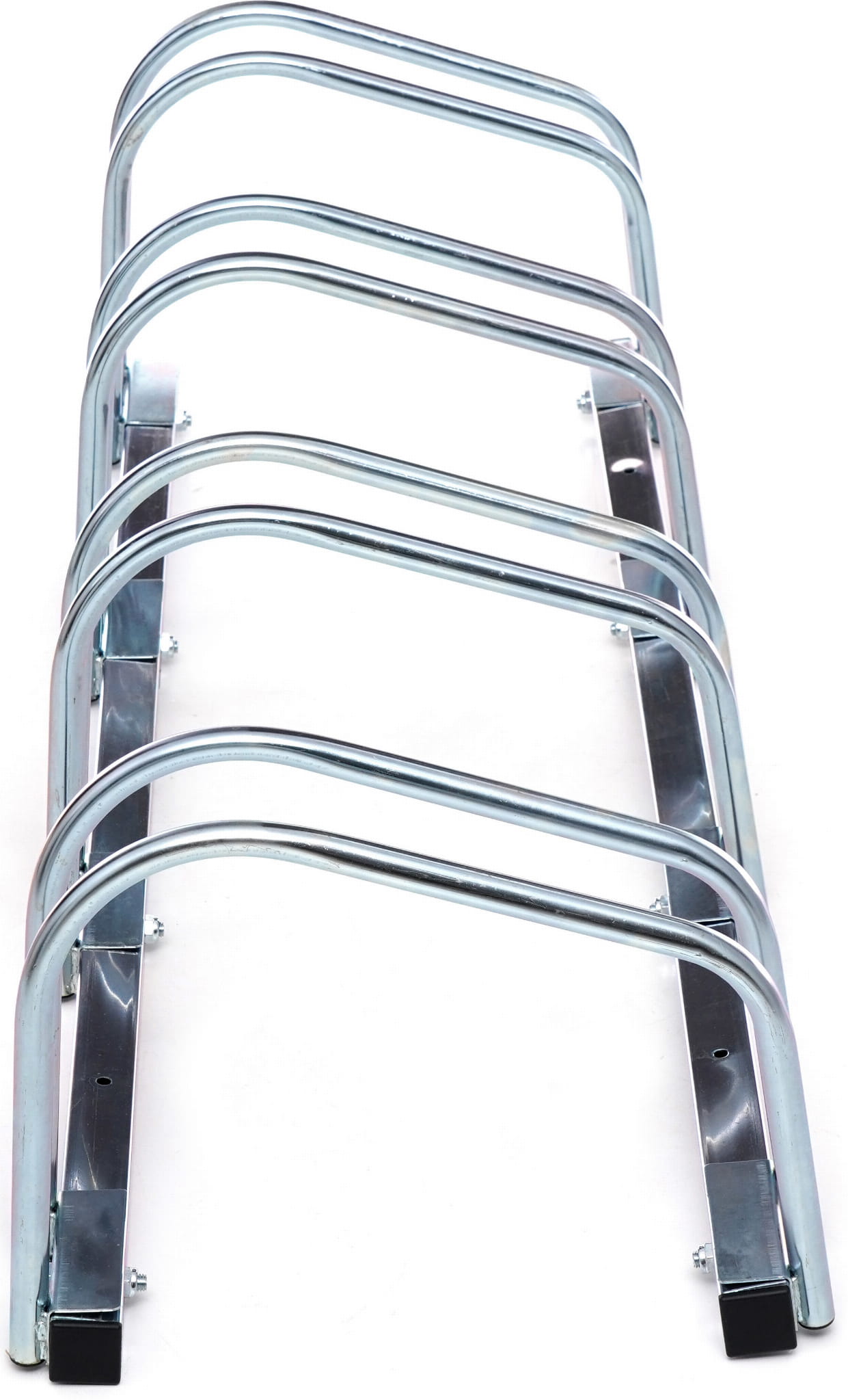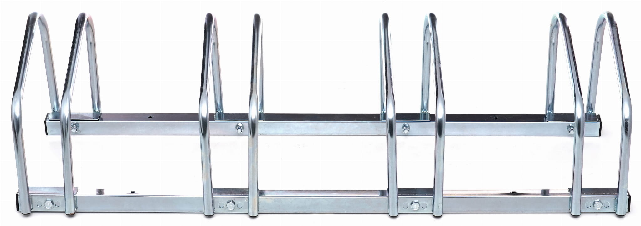 Stojak wyposażony jest w otwory montażowe umożliwiające przykręcenie do betonu, kostki brukowej lub asfaltu. Trwałe mocowanie eliminuje ryzyko przewrócenia się stojaka i utrudnia kradzież rowerów razem z całą konstrukcją.