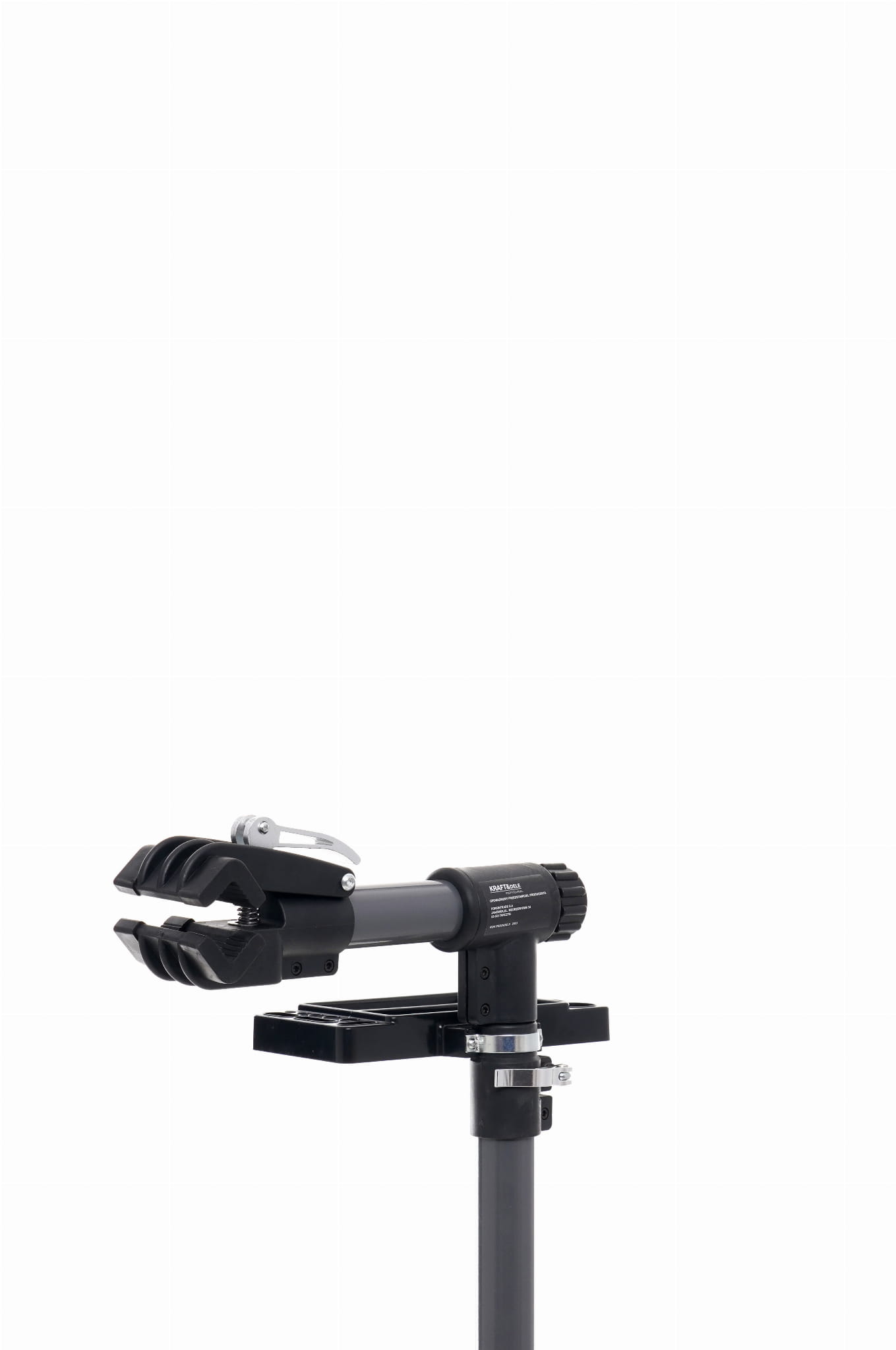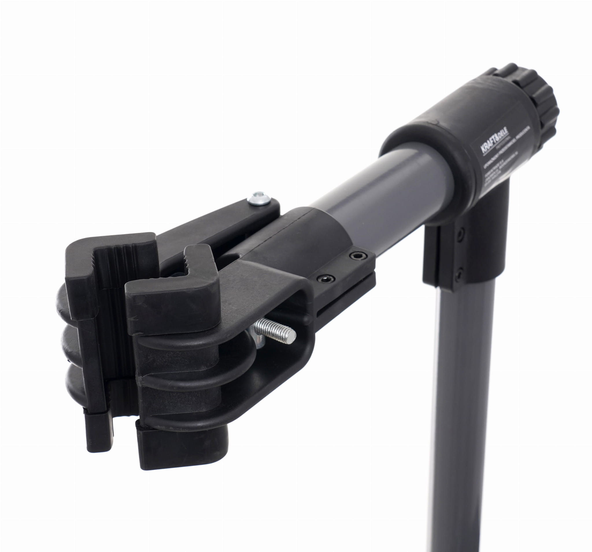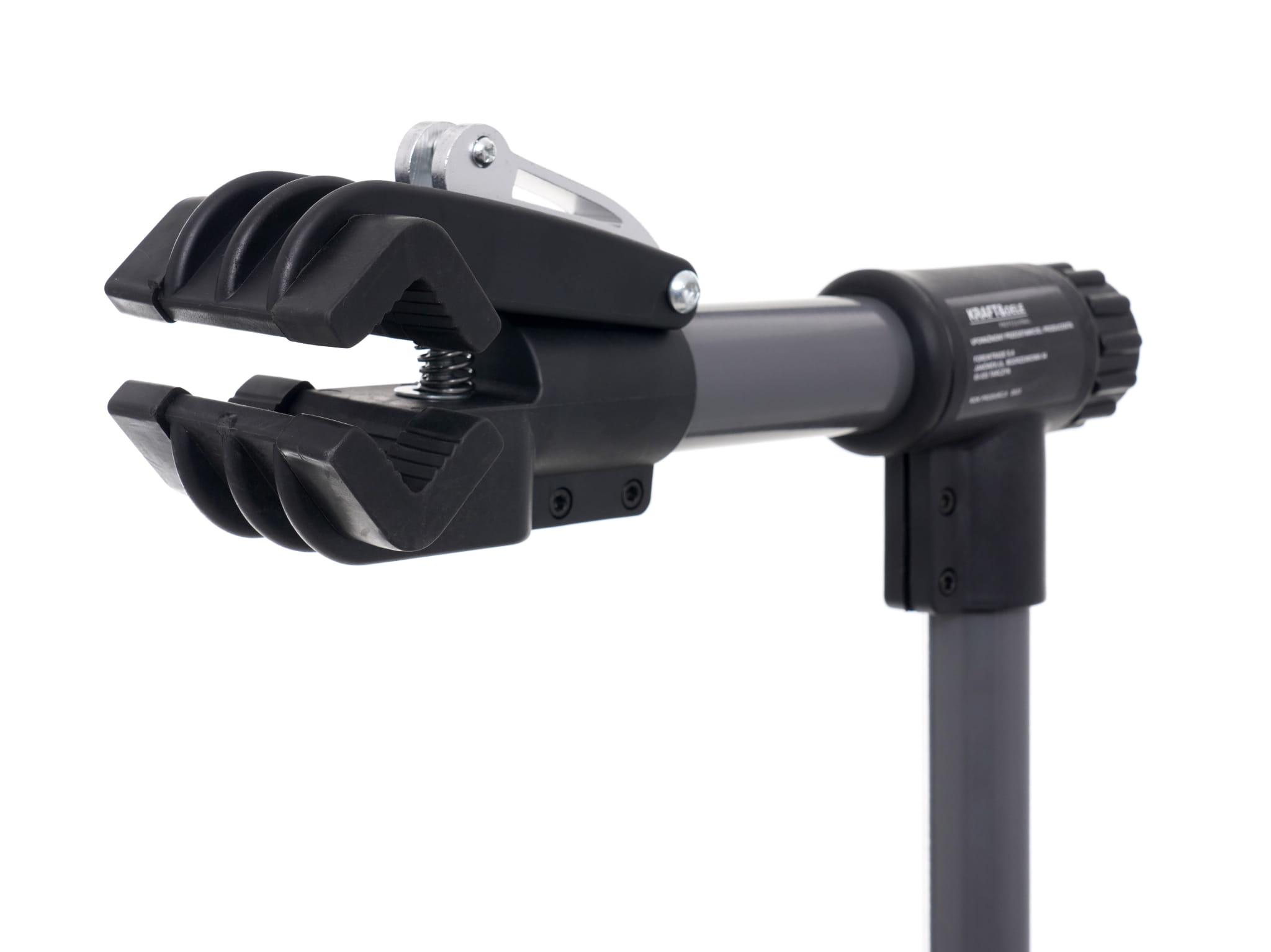 Zacisk wyłożony gumą chroni ramę roweru przed zarysowaniem i odkształceniem. Szczególnie istotne przy pracy z ramami karbonowymi lub aluminiowymi o cienkich ściankach. Zakres zacisku 2,5–9 cm obejmuje większość stosowanych profili rur.
