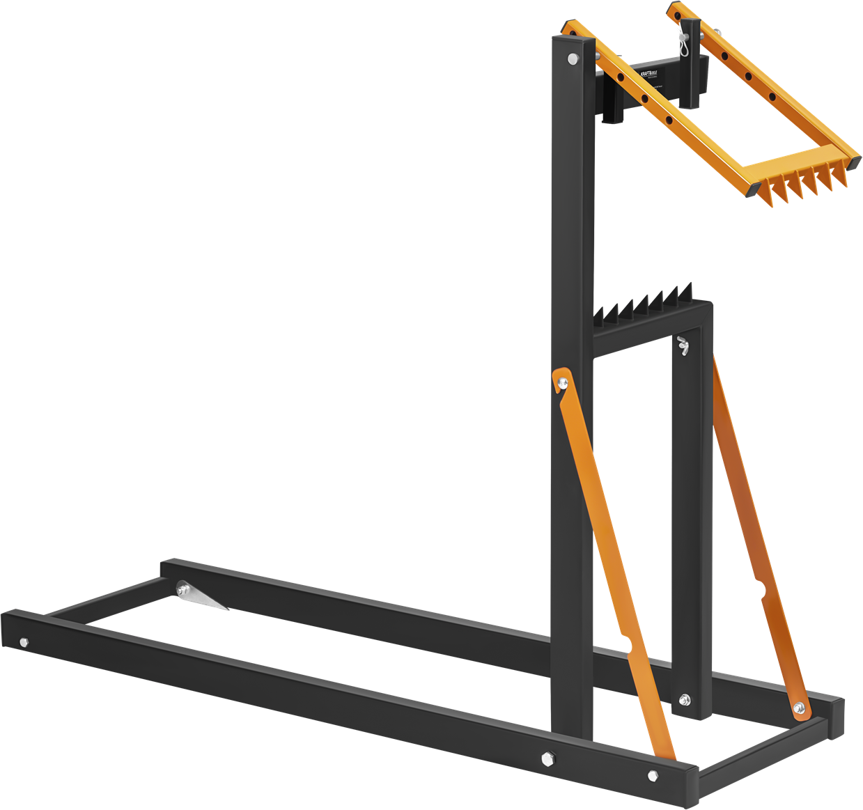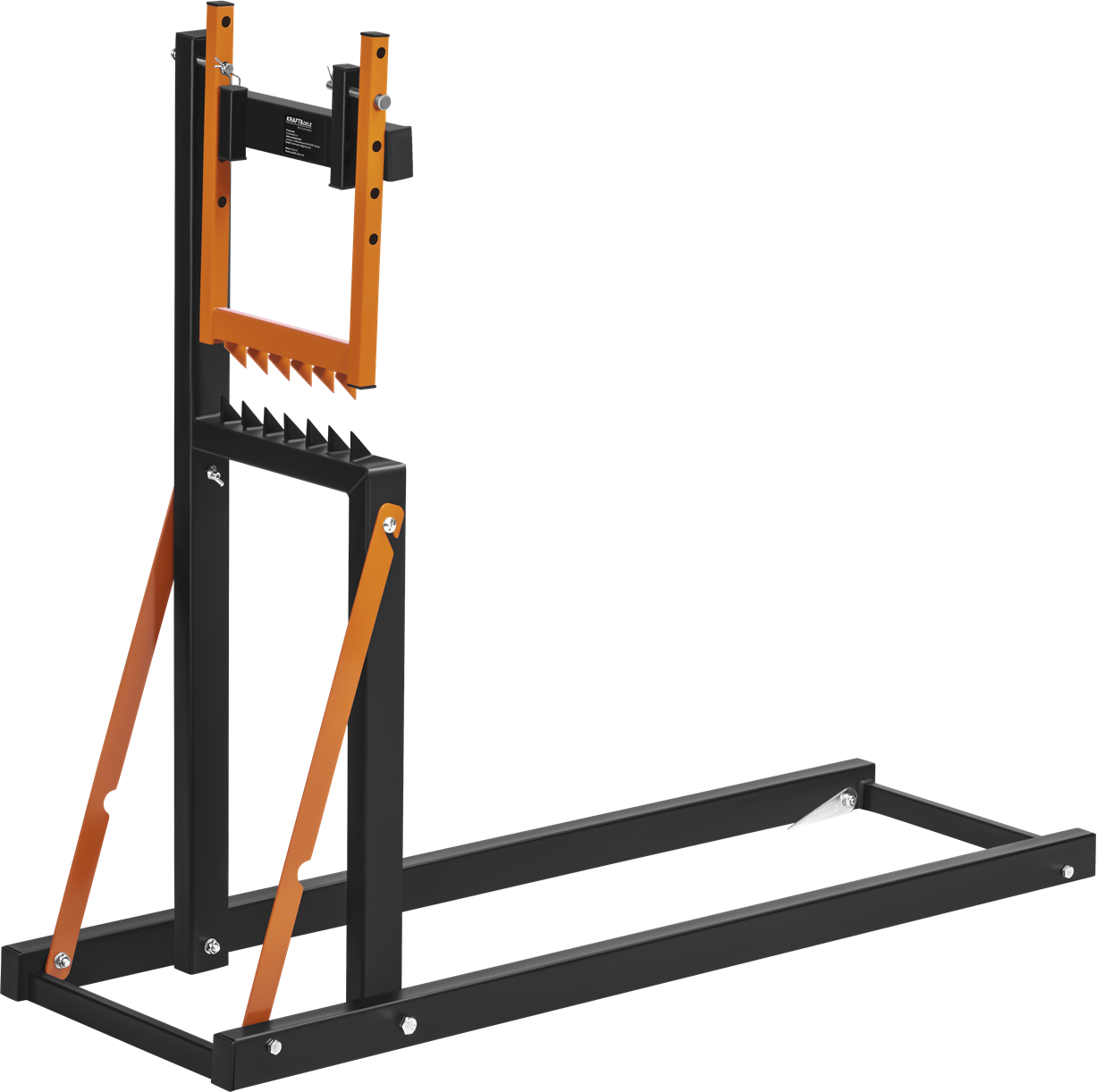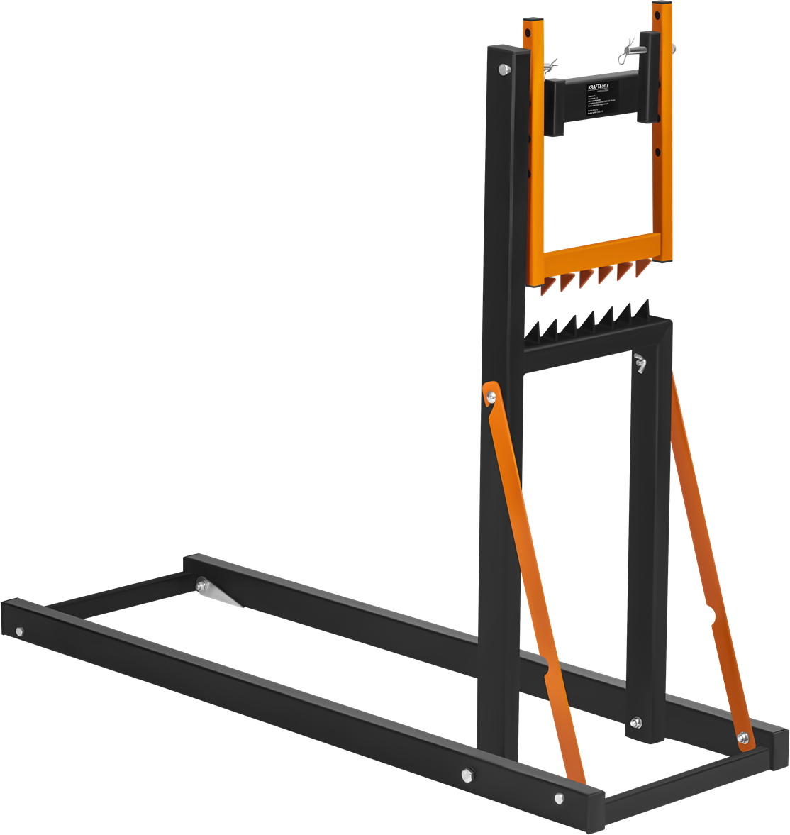 Stalowy koziołek do piłowania i cięcia drewna opałowego z regulowanym zaciskiem oraz zębami stabilizującymi kłodę. Składana konstrukcja umożliwia pracę w pozycji wyprostowanej i ogranicza obciążenie kręgosłupa podczas długotrwałego użytkowania.