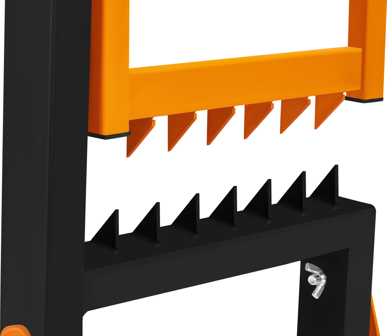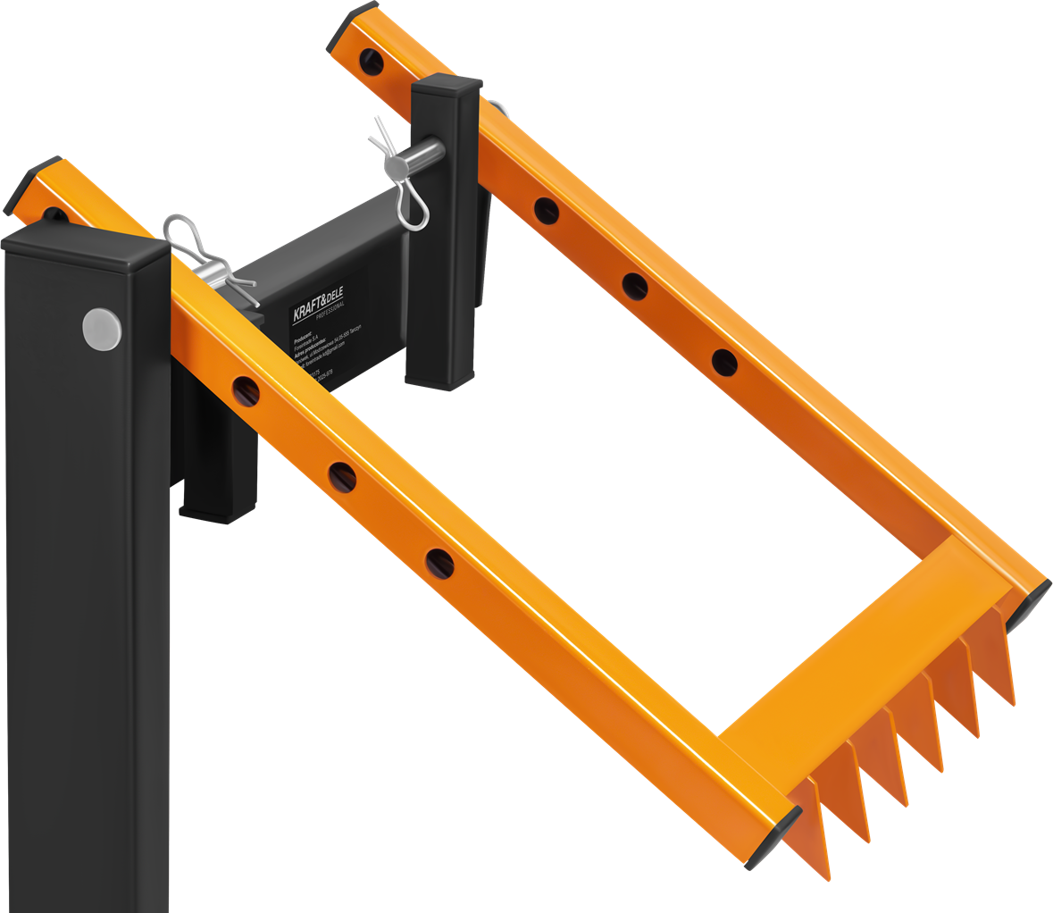 Metalowe zęby wbudowane w konstrukcję zacisku blokują drewno w miejscu podczas cięcia. Eliminuje to konieczność przytrzymywania kłody ręką, co bezpośrednio przekłada się na bezpieczeństwo pracy z piłą łańcuchową lub ręczną.