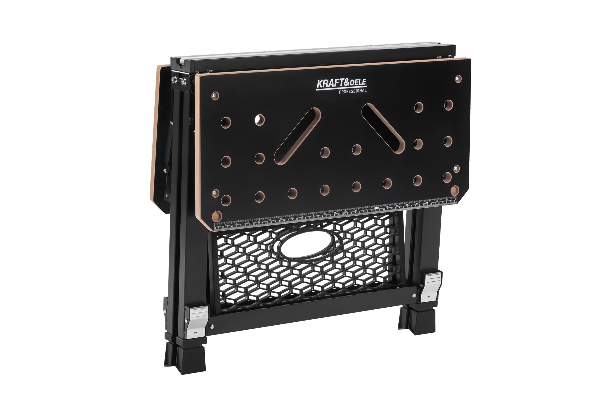 Model KD11871 to stół warsztatowy do miejsc, gdzie stanowisko musi być mobilne i szybkie w przygotowaniu. Dzięki funkcji składania oraz systemowi zaciskowemu sprawdzi się przy pracy z drewnem i materiałami wymagającymi pewnego unieruchomienia.