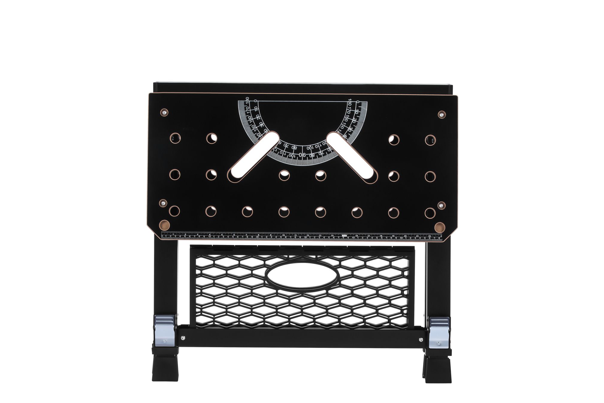 Stół Roboczy I Zaciskowy Składany 454KG Ładowność 70x65x92CM MDF KD11871 to praktyczny stół warsztatowy, który łatwo zabierzesz tam, gdzie aktualnie pracujesz. Sprawdza się zarówno jako stanowisko robocze do obróbki, jak i jako stabilna baza do pewnego mocowania elementów podczas cięcia, wiercenia czy klejenia.