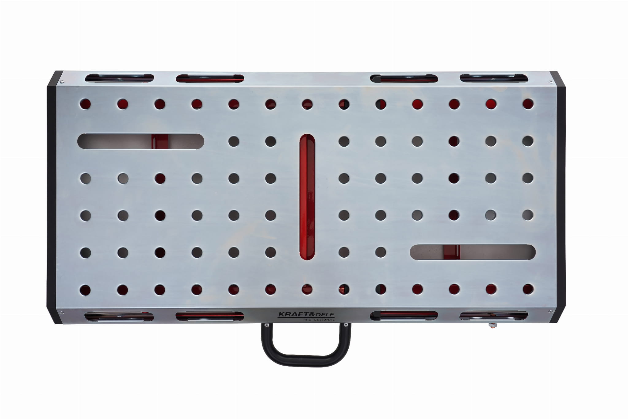 KD639 to składany stół roboczy przeznaczony do prac spawalniczych, montażowych i serwisowych. Stalowa konstrukcja z ocynkowanym blatem, regulowana wysokość w zakresie 705–930 mm oraz udźwig 454 kg pozwalają stosować go zarówno w stałych stanowiskach warsztatowych, jak i podczas prac mobilnych w terenie.