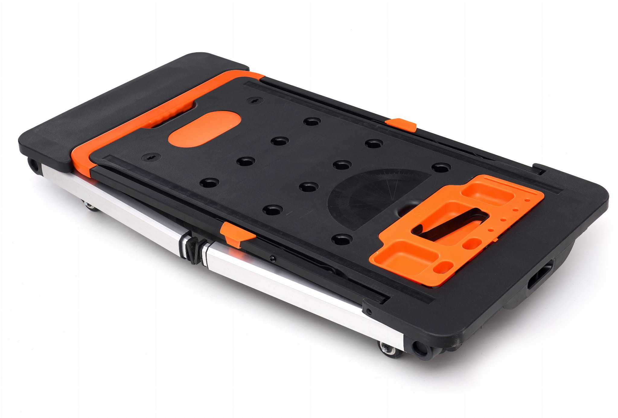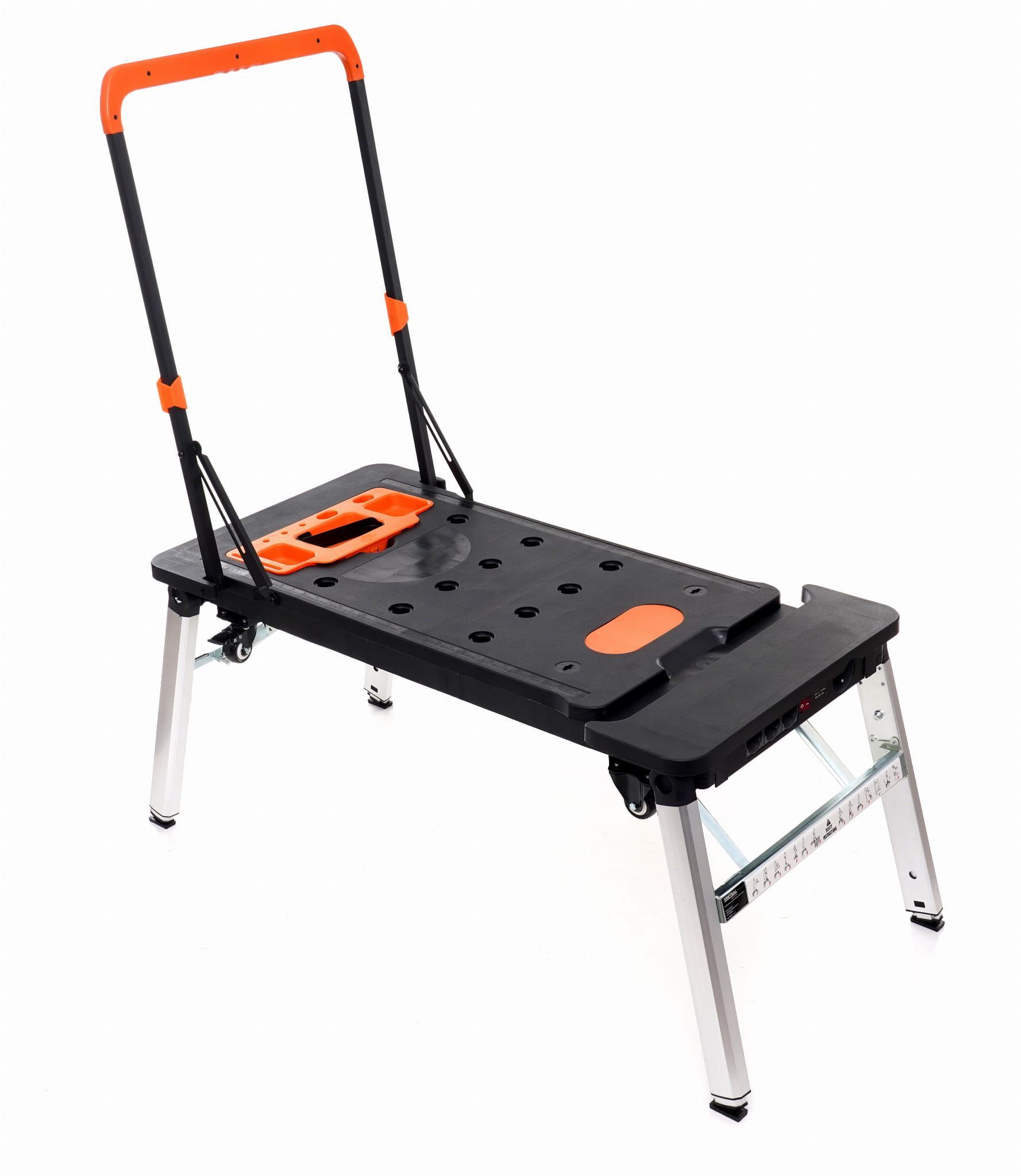 Wielofunkcyjne urządzenie warsztatowe łączące w jednej konstrukcji siedem narzędzi roboczych: stół warsztatowy, leżankę, kobyłkę do cięcia, koziołek, podest, wózek platformowy oraz wózek ręczny. Przeznaczone do warsztatów samochodowych, magazynów oraz użytku domowego przy lekkich i średnich pracach remontowo-montażowych.