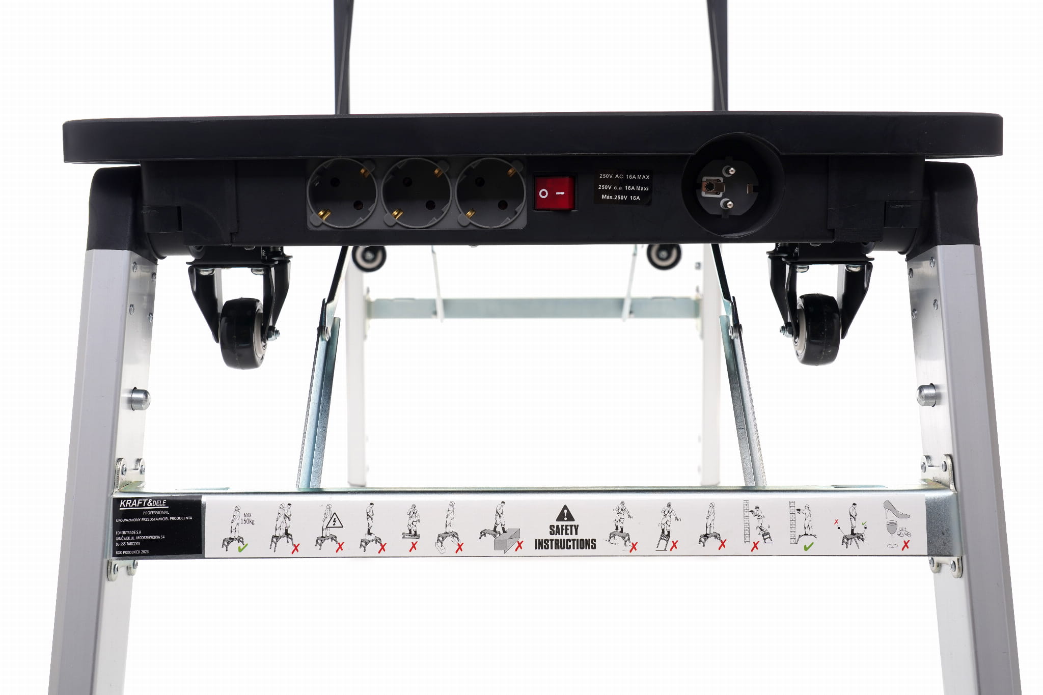 Przed każdą zmianą konfiguracji należy sprawdzić, czy wszystkie elementy złączne są prawidłowo zablokowane — szczególnie istotne przy użyciu jako podest lub koziołek, gdzie stabilność konstrukcji bezpośrednio wpływa na bezpieczeństwo pracy. Należy przestrzegać dopuszczalnych nośności dla każdej z funkcji osobno, ponieważ różnią się one znacząco (150 kg vs. 250 kg w zależności od trybu).