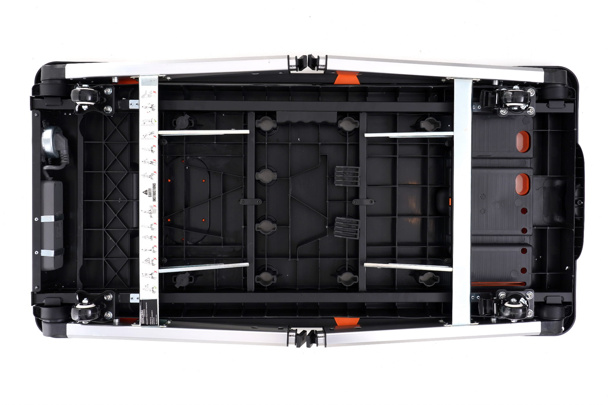 Platforma o wymiarach 108,5 × 54,5 cm (głębokość 15,5 cm) zapewnia miejsce do pracy z większymi elementami — drzwiami, panelami karoserii, długimi deskami czy skrzyniami. Szerokość ponad metra to istotna przewaga nad kompaktowymi stolikami.