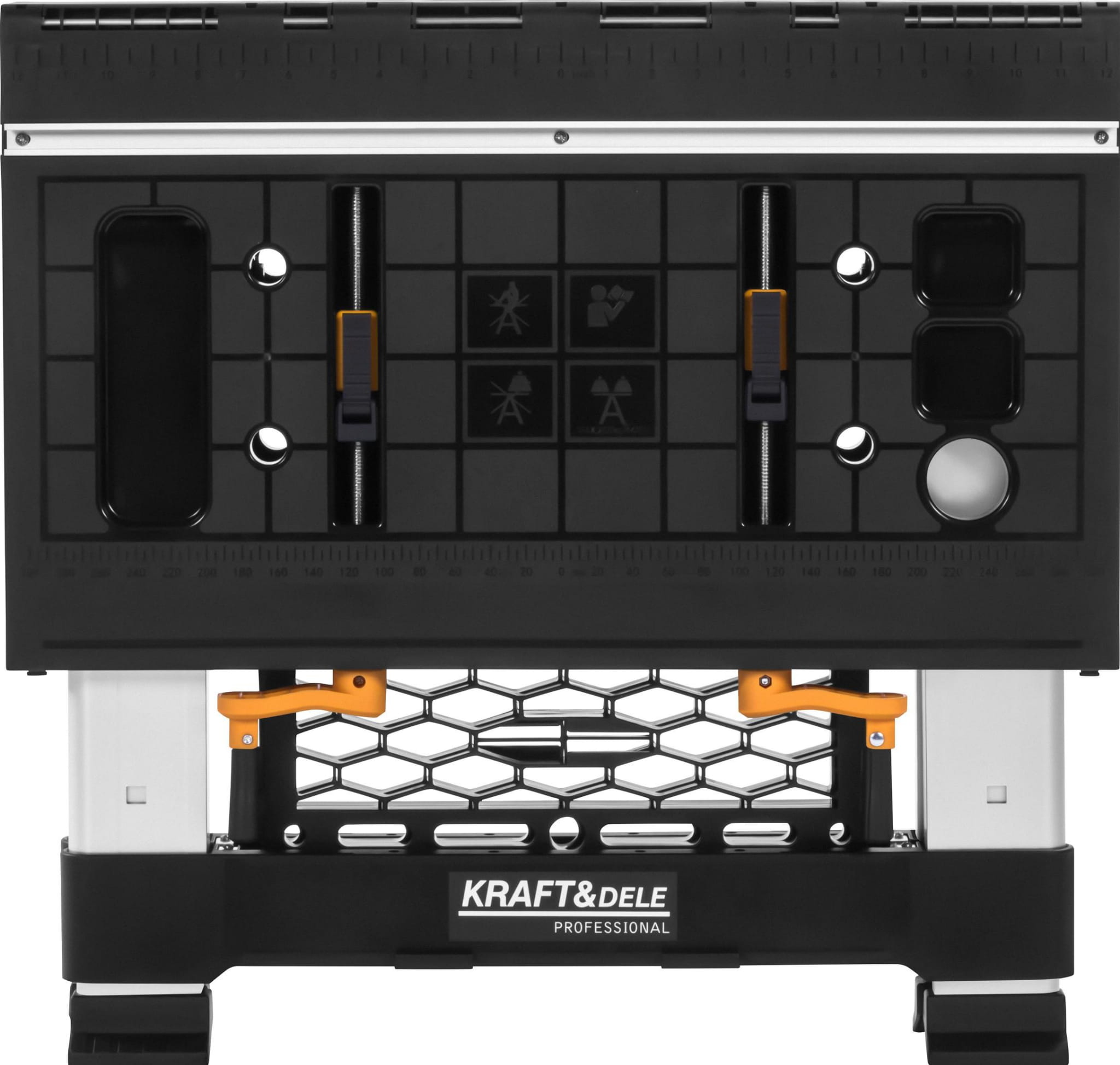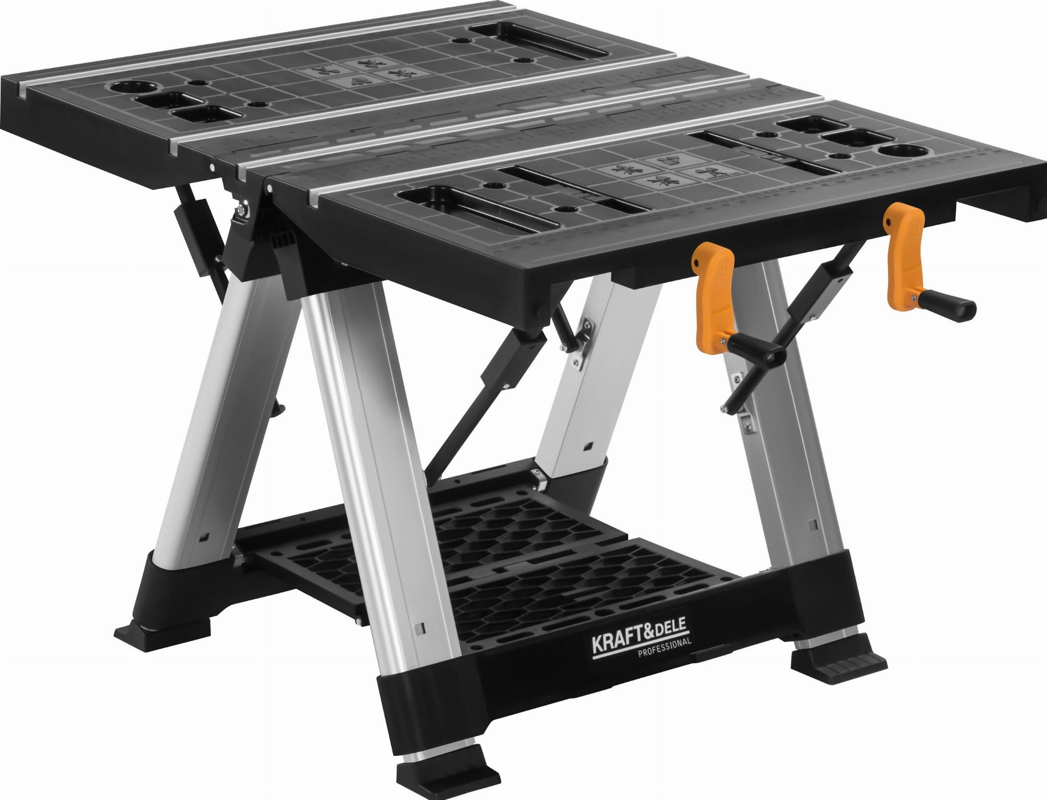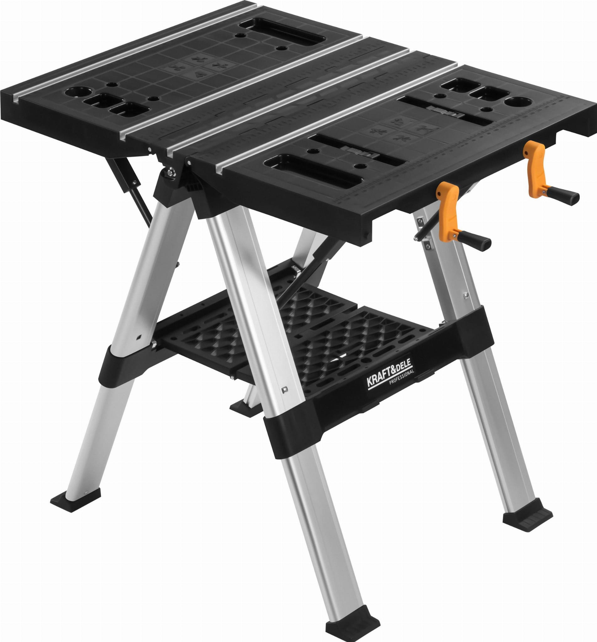 KD11870 to składany stół roboczy marki KRAFT&DELE przeznaczony do prac warsztatowych i obróbki drewna. Konstrukcja stalowo-tworzywowa umożliwia stabilną pracę zarówno w warsztacie stacjonarnym, jak i w terenie. Stół pełni funkcję konika piłowego i może być łączony z innymi egzemplarzami w celu uzyskania większej powierzchni roboczej.
