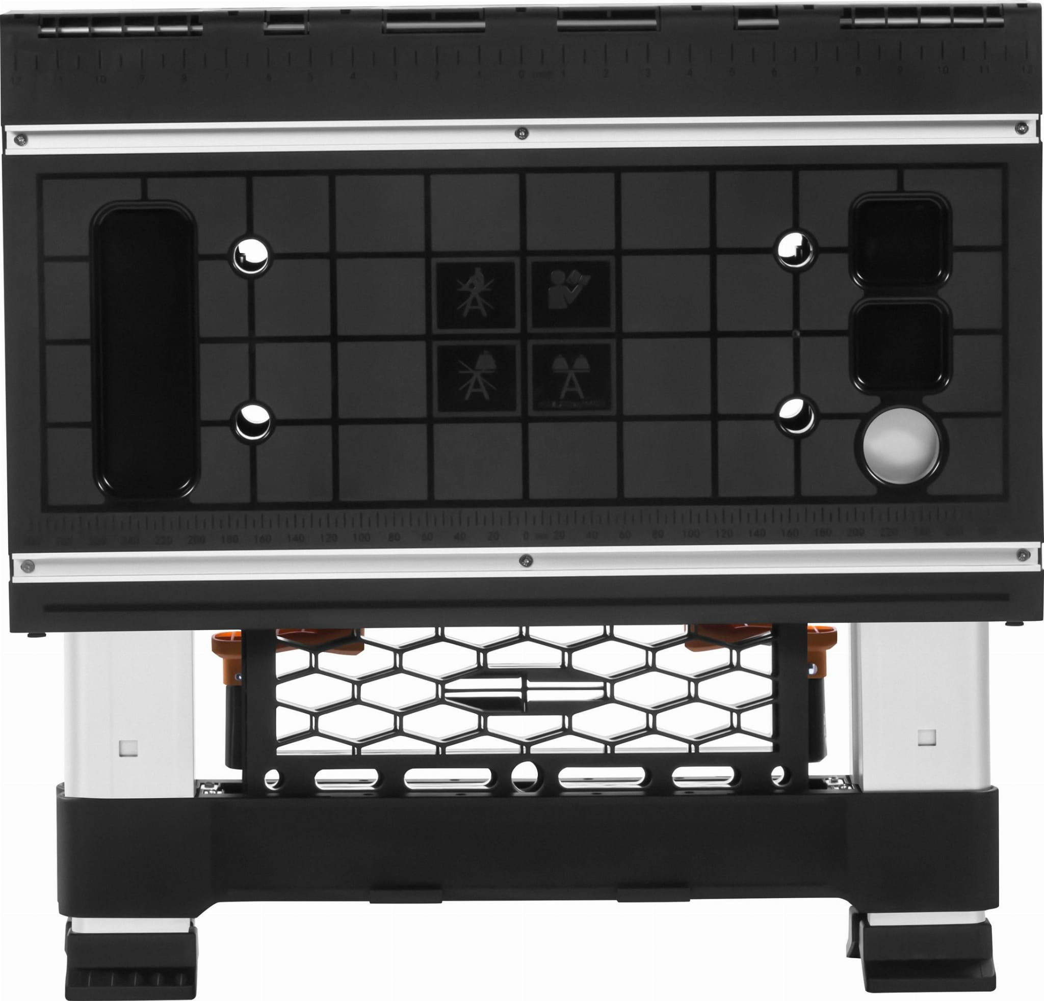 Po złożeniu stół osiąga wymiary 65 x 63 x 13,5 cm przy wadze 13 kg, co pozwala na transport w bagażniku samochodu osobowego lub przechowywanie w wąskiej szafie narzędziowej. Rozkładanie i składanie nie wymaga narzędzi.