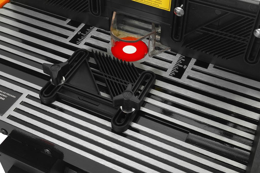 Prowadnica boczna umożliwia ustawienie odległości frezu od krawędzi materiału. Dzięki temu możliwe jest wykonywanie powtarzalnych rowków i wpustów bez konieczności każdorazowego trasowania.
